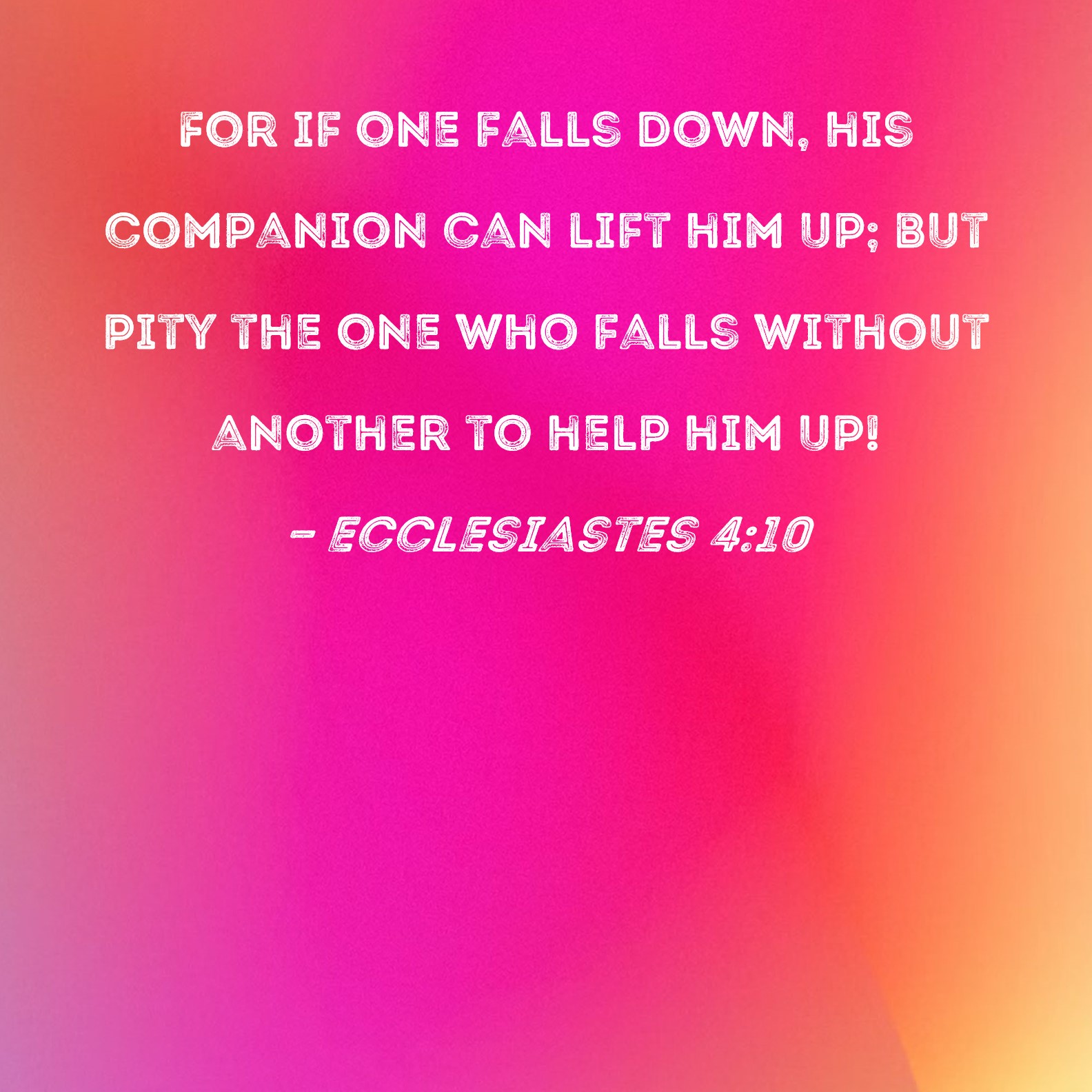Ecclesiastes 4:10 For if one falls down, his companion can lift him up; but pity the one who falls without another to help him up!