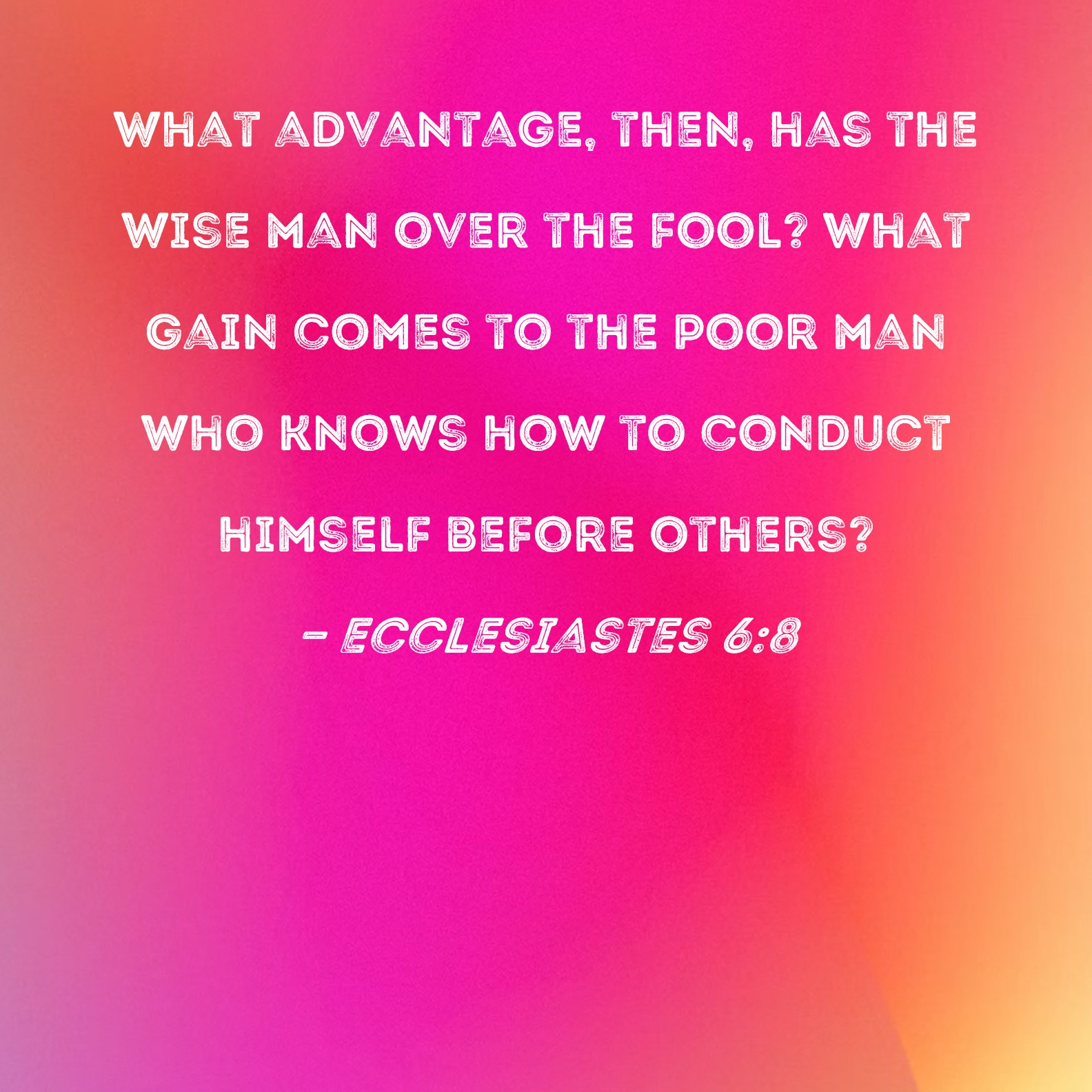 Ecclesiastes 6:8 What advantage, then, has the wise man over the fool? What gain comes to the poor man who knows how to conduct himself before others?