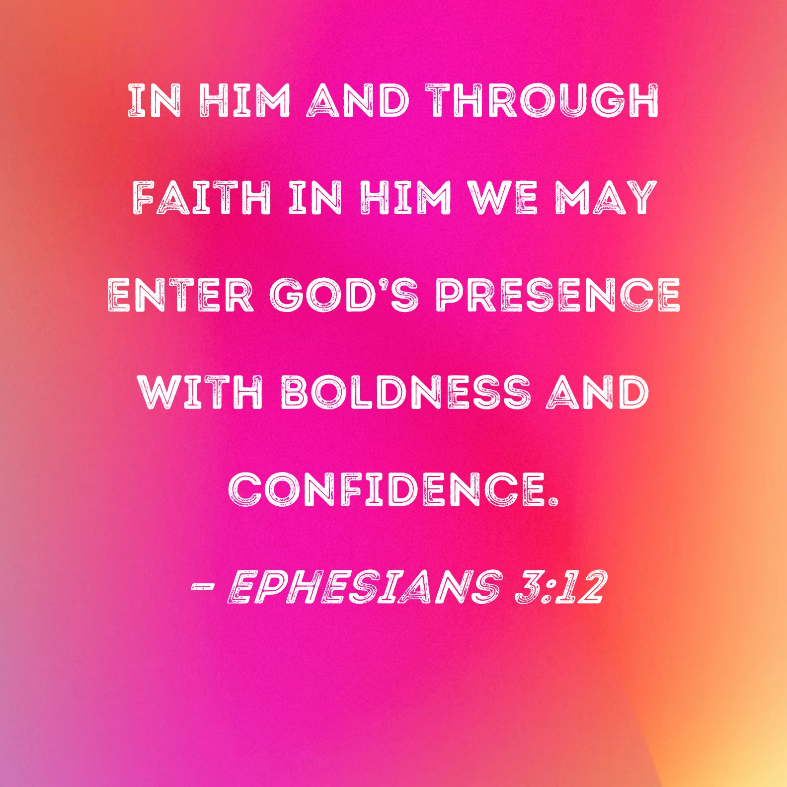 Ephesians 3:12 In Him and through faith in Him we may enter God's presence with boldness and confidence.