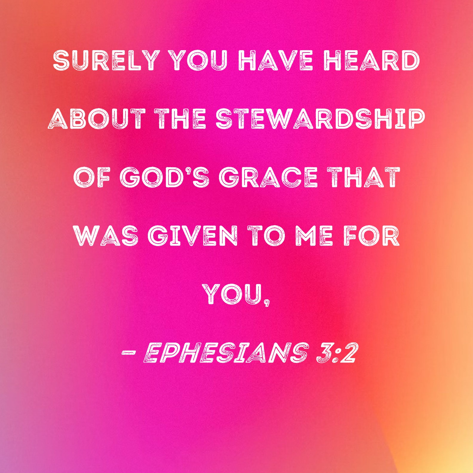 Ephesians 3:2 Surely you have heard about the stewardship of God's grace that was given to me for you,