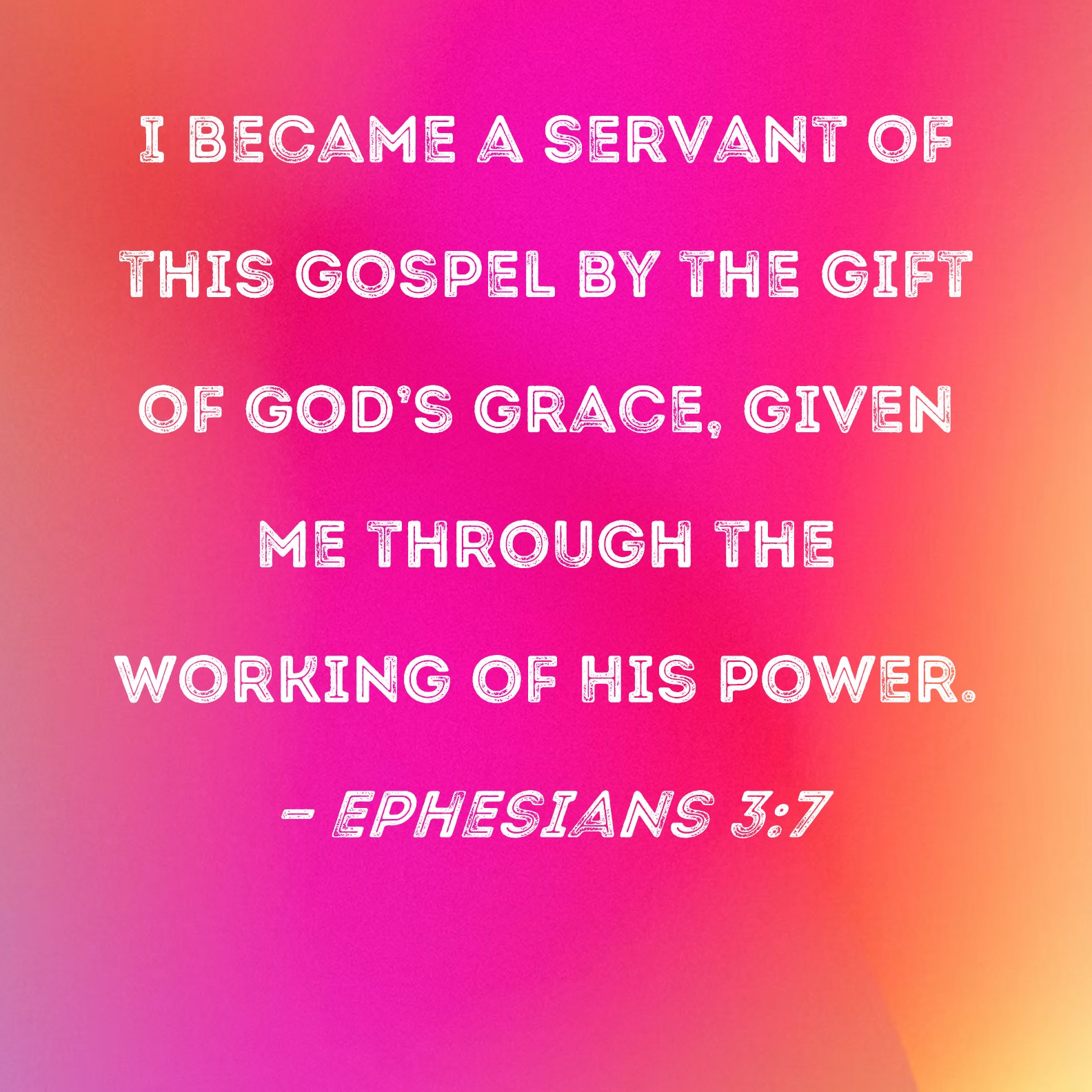 Ephesians 3:7 I became a servant of this gospel by the gift of God's grace, given me through the working of His power.