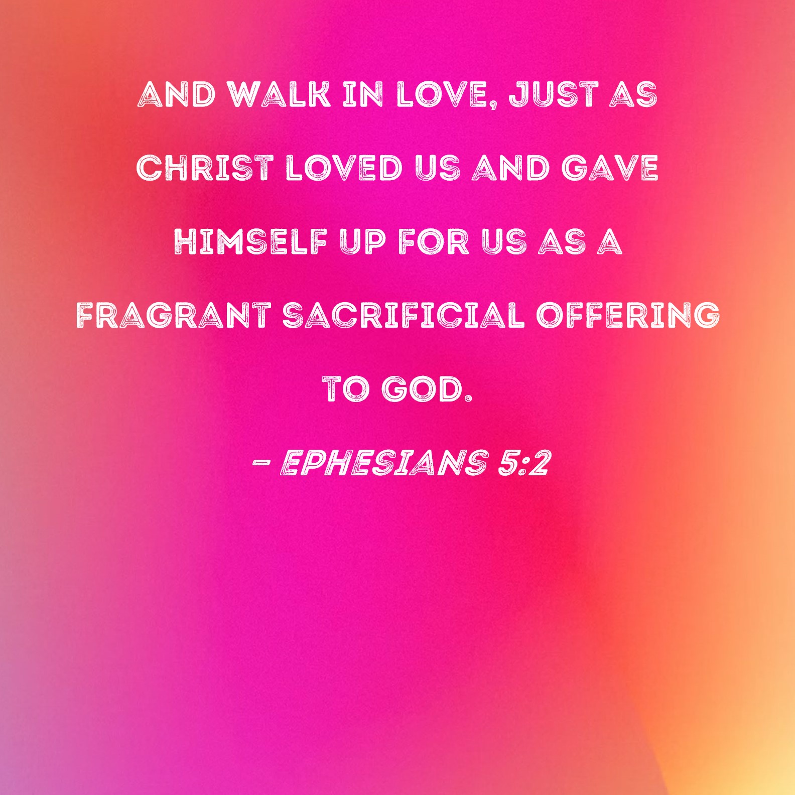 Ephesians 5:2 and walk in love, just as Christ loved us and gave Himself up for us as a fragrant sacrificial offering to God.