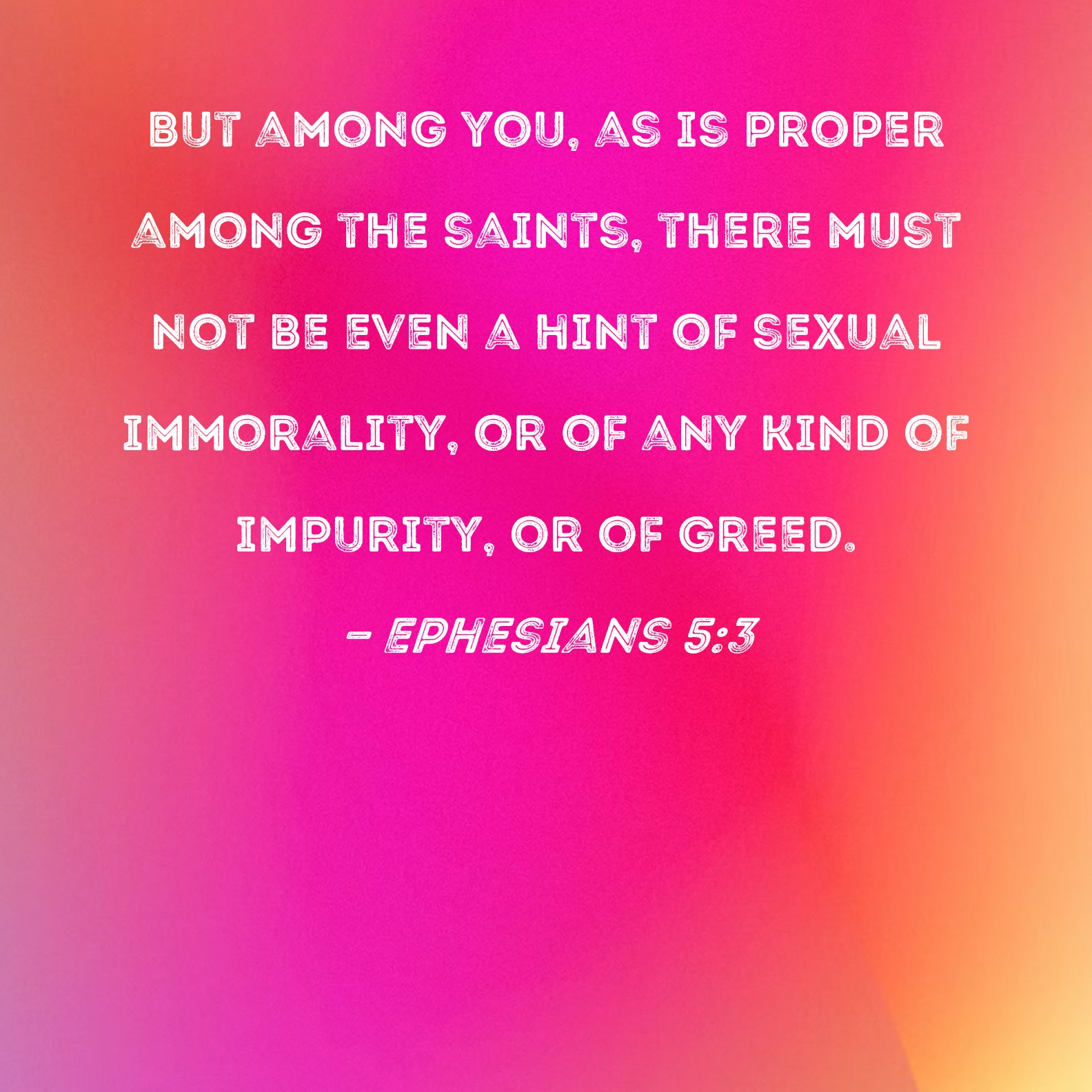 Ephesians 5:3 But among you, as is proper among the saints, there must not be even a hint of sexual immorality, or of any kind of impurity, or of greed.