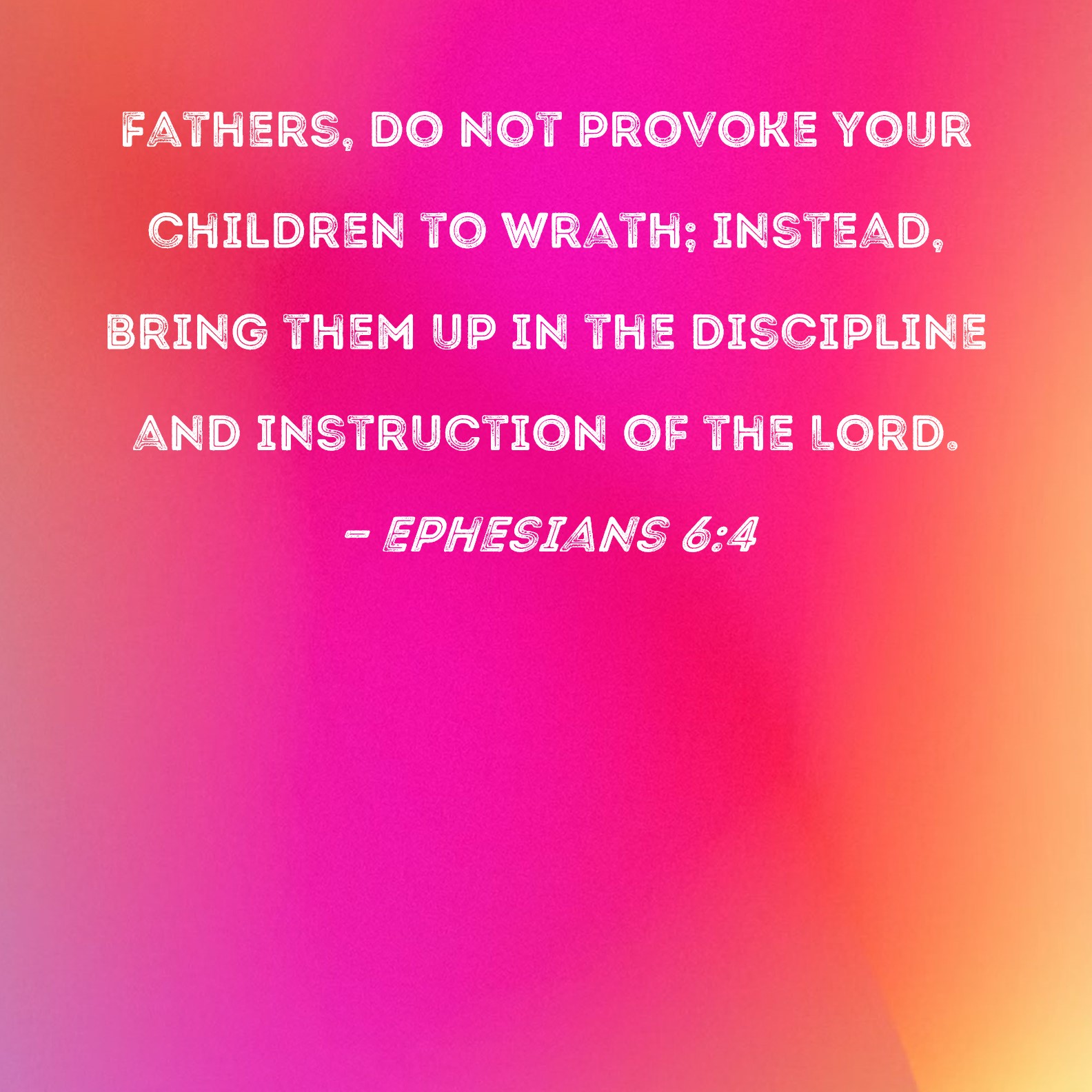 Ephesians 6:4 Fathers, do not provoke your children to wrath; instead, bring them up in the discipline and instruction of the Lord.