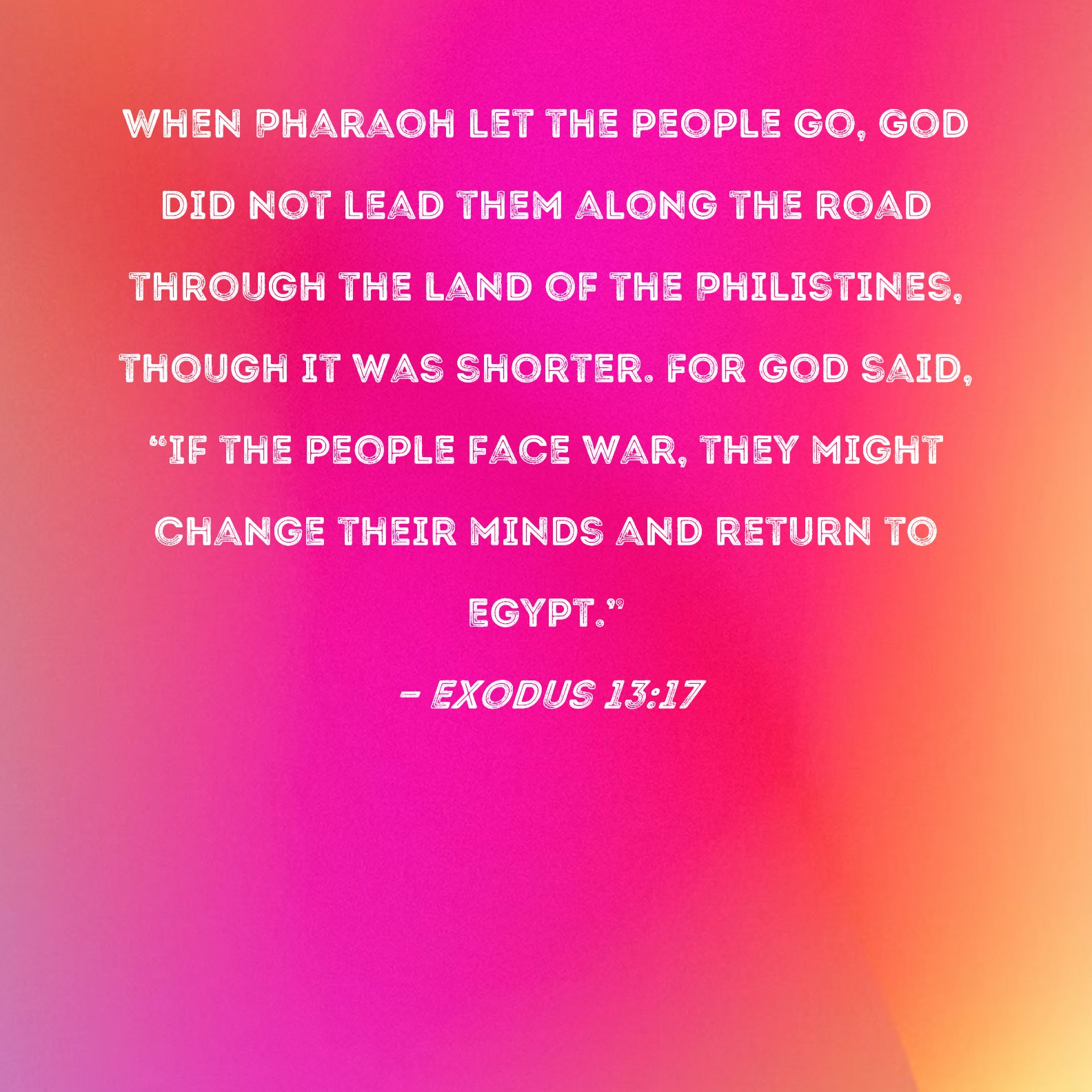 Exodus 13:17 When Pharaoh let the people go, God did not lead them along the road through the land of the Philistines, though it was shorter. For God said, "If the people face war, they might change their minds and return to Egypt."