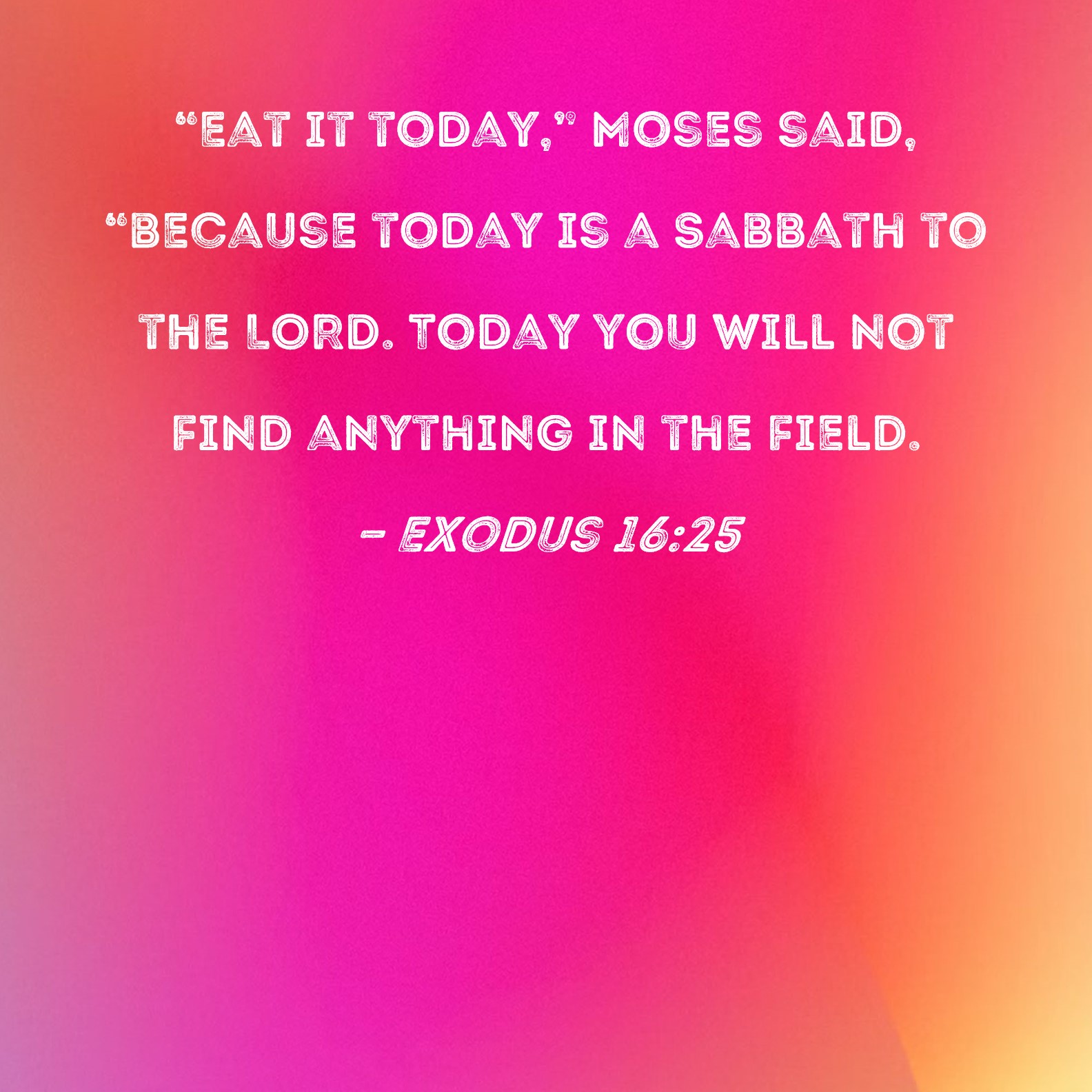 Exodus 16:25 "Eat it today," Moses said, "because today is a Sabbath to the LORD. Today you will not find anything in the field.
