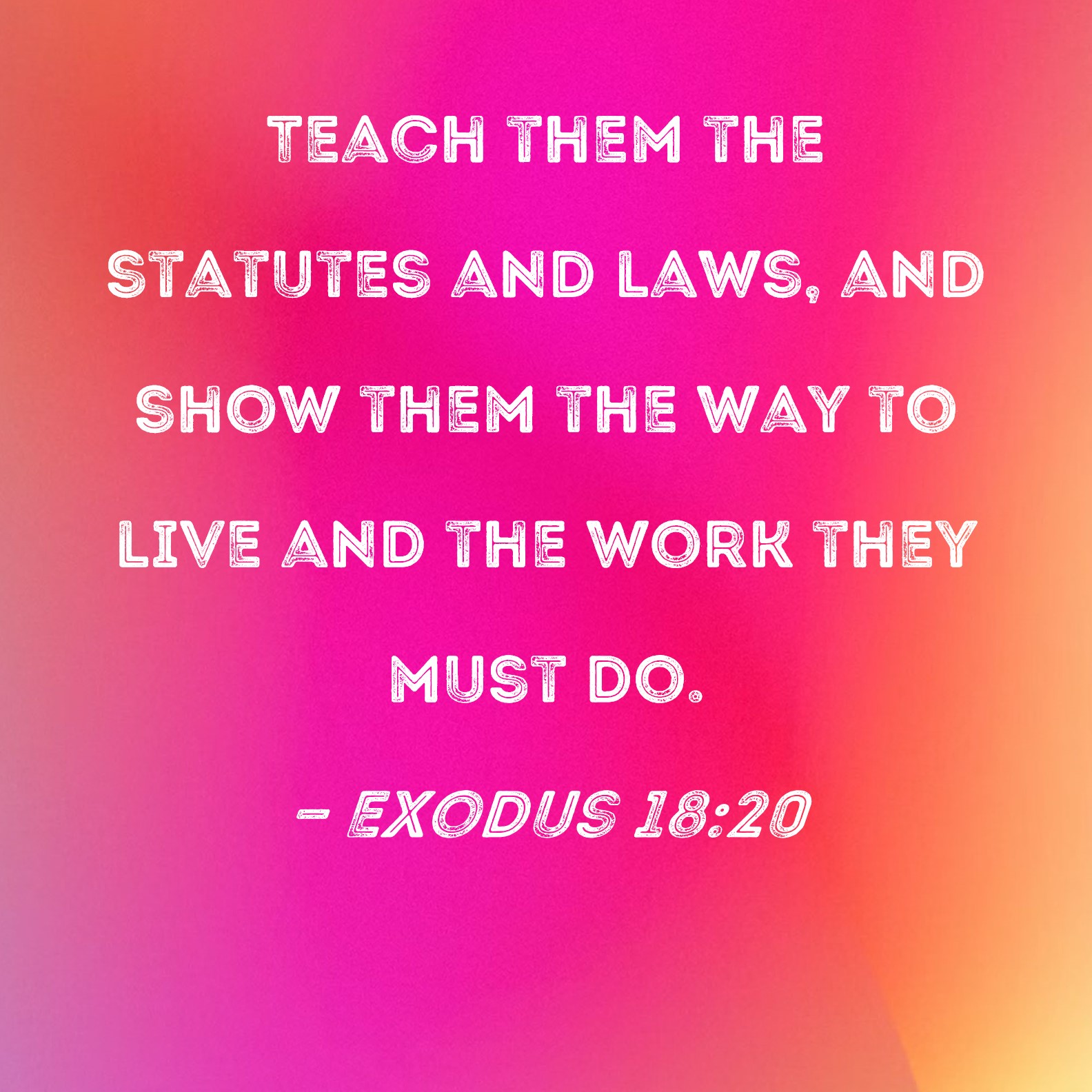 Exodus 18:20 Teach them the statutes and laws, and show them the way to live and the work they must do.