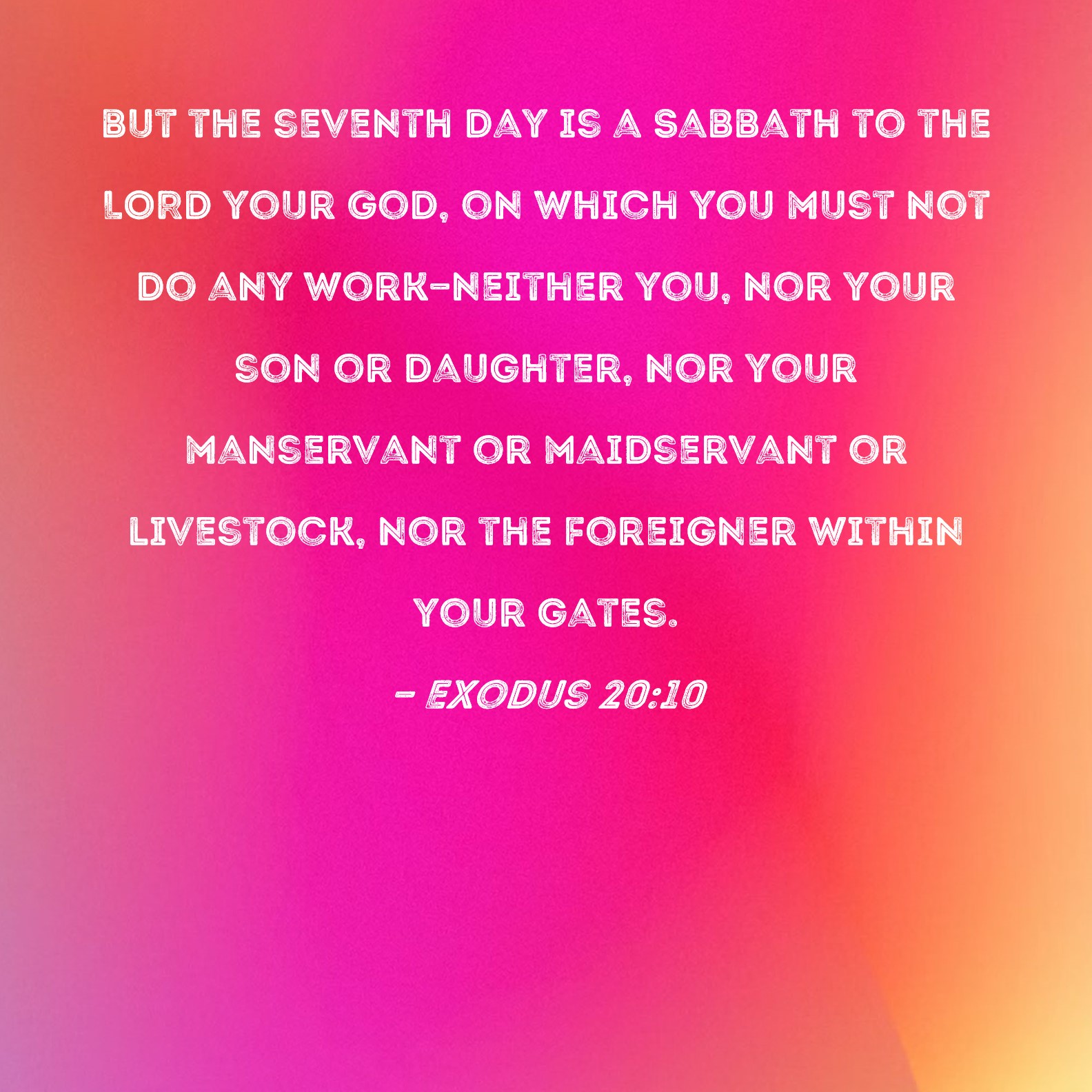 Exodus 20:10 but the seventh day is a Sabbath to the LORD your God, on which you must not do any work--neither you, nor your son or daughter, nor your manservant or maidservant or livestock, nor the foreigner within your gates.