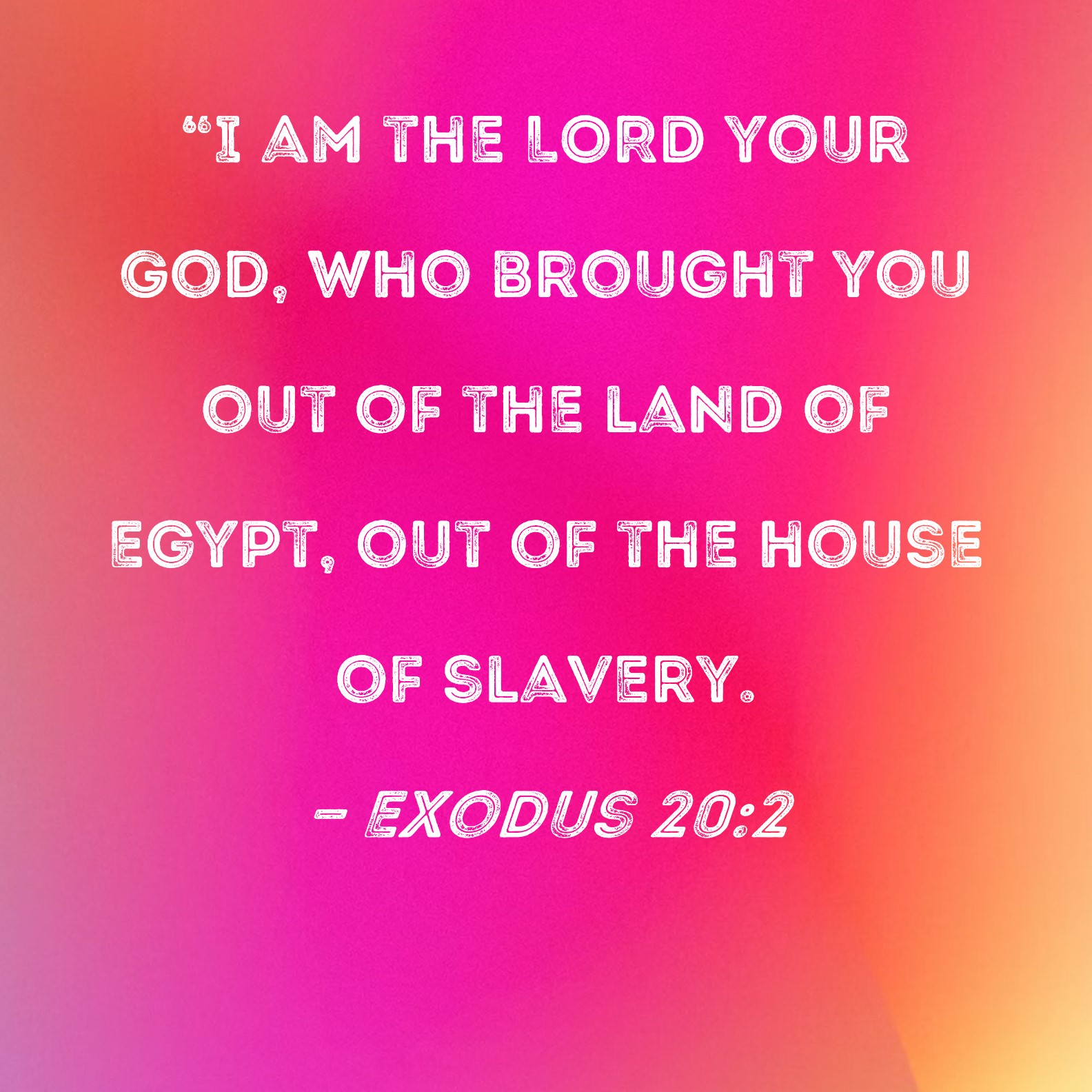 Exodus 20:2 "I am the LORD your God, who brought you out of the land of Egypt, out of the house of slavery.