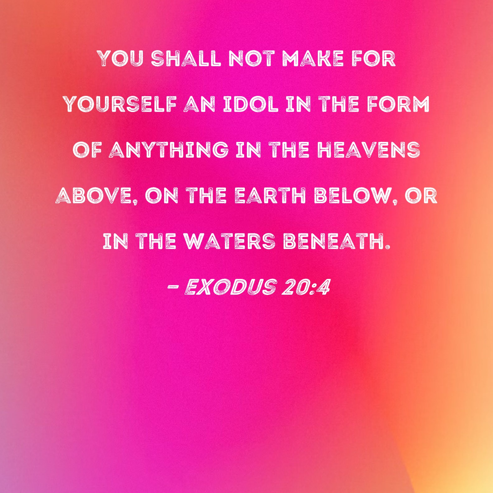 Exodus 20:4 You shall not make for yourself an idol in the form of anything in the heavens above, on the earth below, or in the waters beneath.
