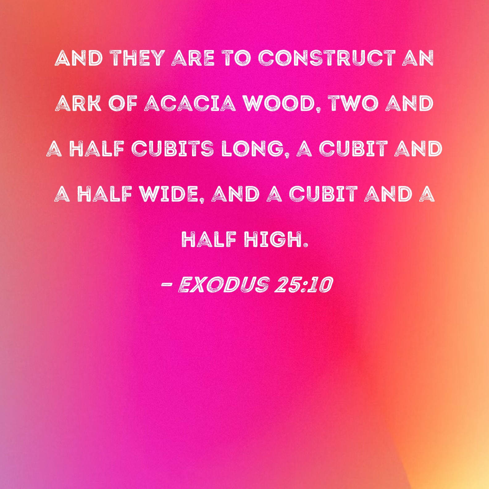 Exodus 25:10 And they are to construct an ark of acacia wood, two and a half cubits long, a cubit and a half wide, and a cubit and a half high.