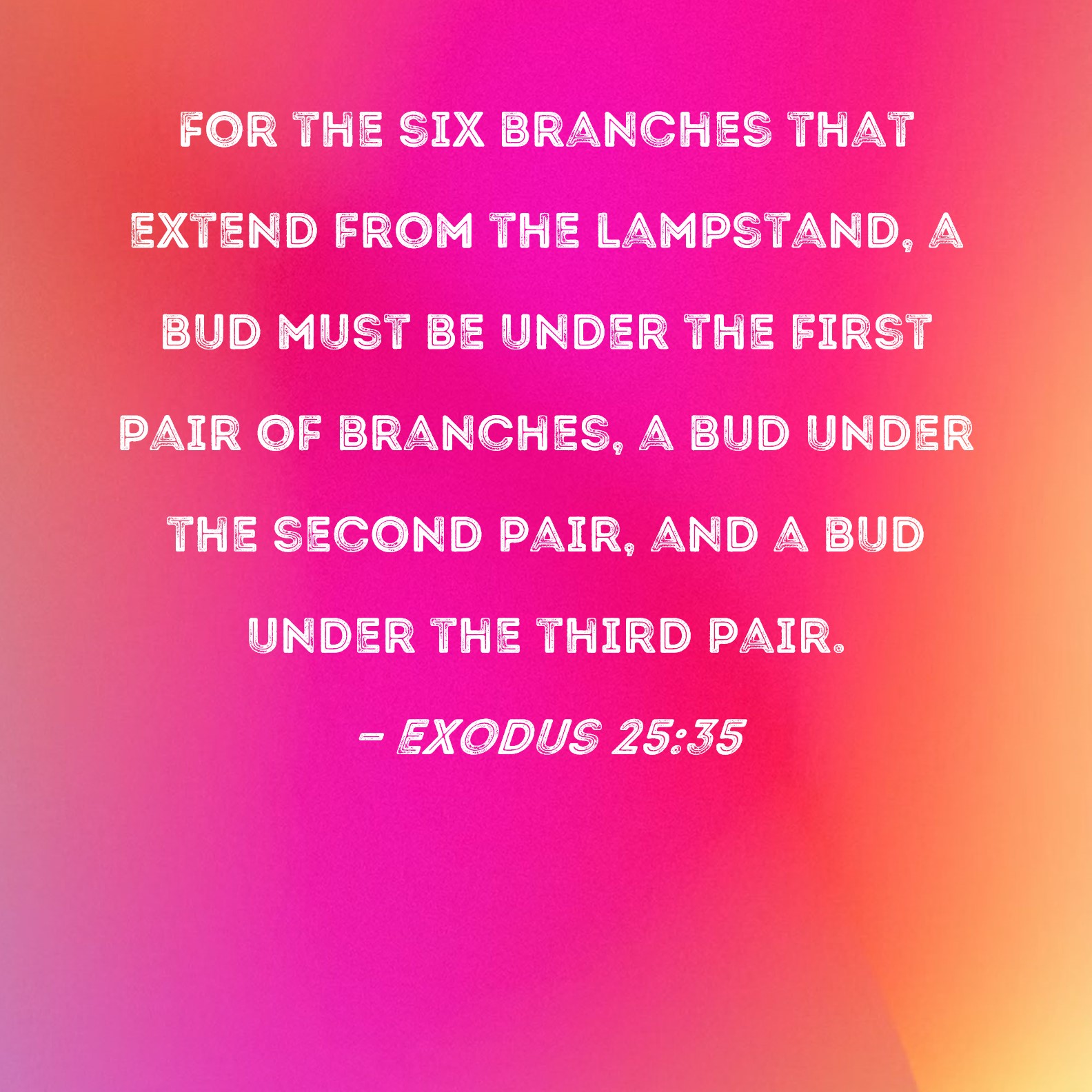 Exodus 25:35 For the six branches that extend from the lampstand, a bud must be under the first pair of branches, a bud under the second pair, and a bud under the third pair.