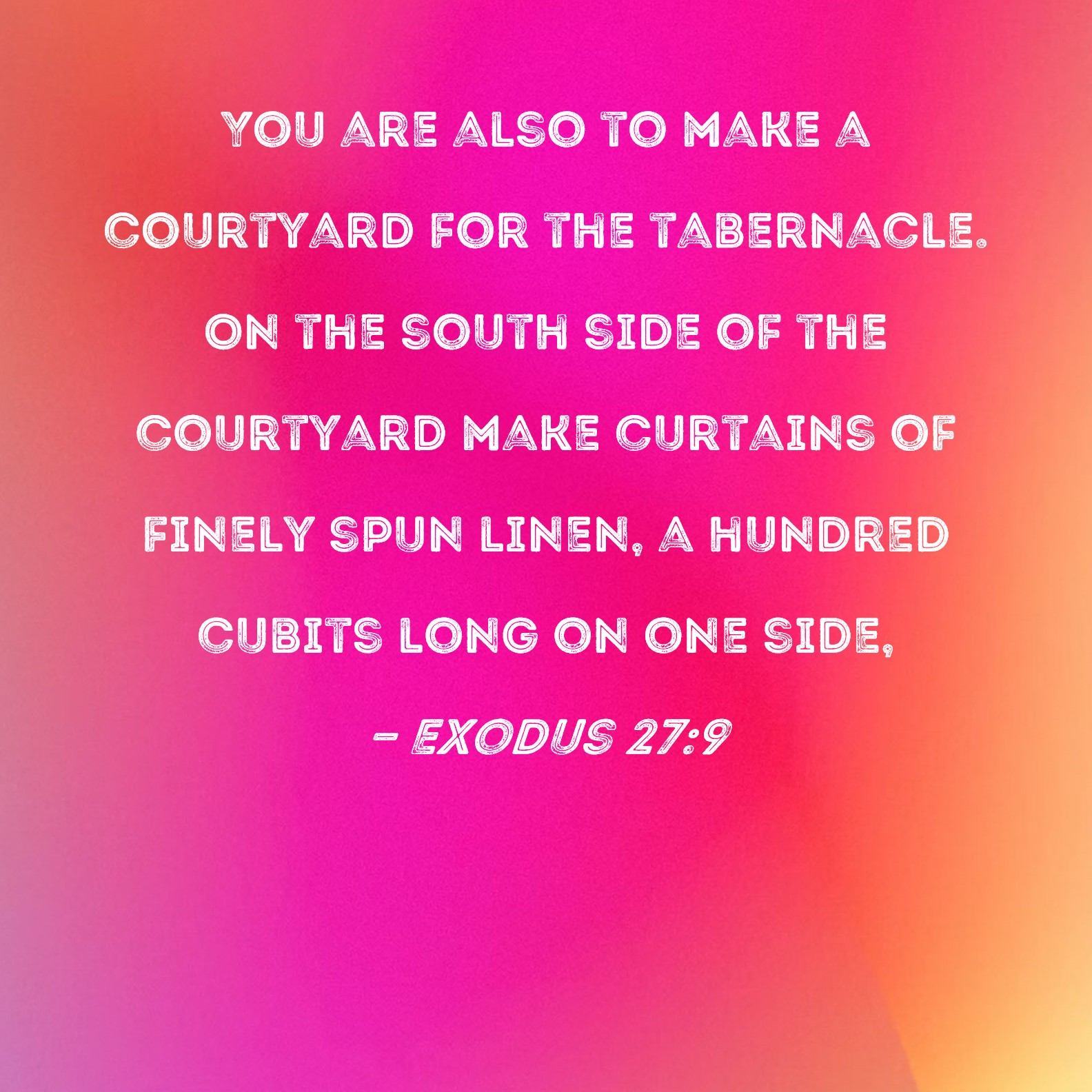 Exodus 27:9 You are also to make a courtyard for the tabernacle. On the south side of the courtyard make curtains of finely spun linen, a hundred cubits long on one side,