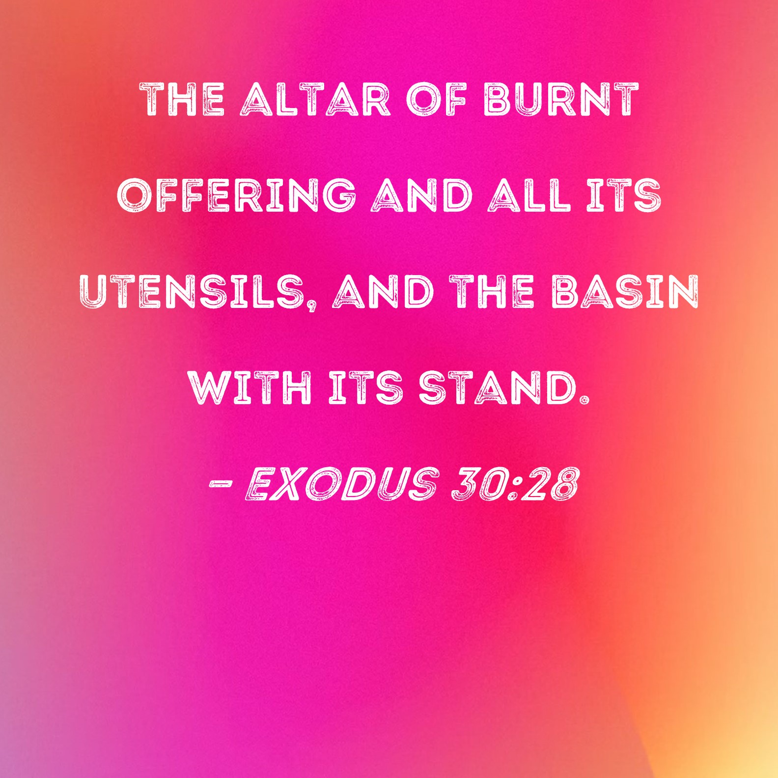 Exodus 30:28 the altar of burnt offering and all its utensils, and the basin with its stand.