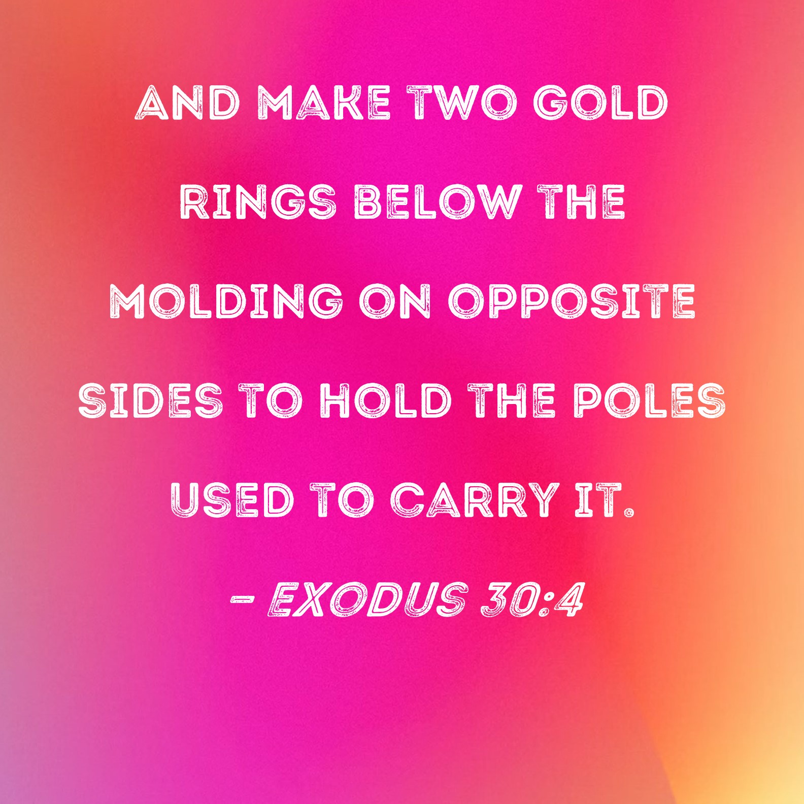 Exodus 30:4 And make two gold rings below the molding on opposite sides to hold the poles used to carry it.