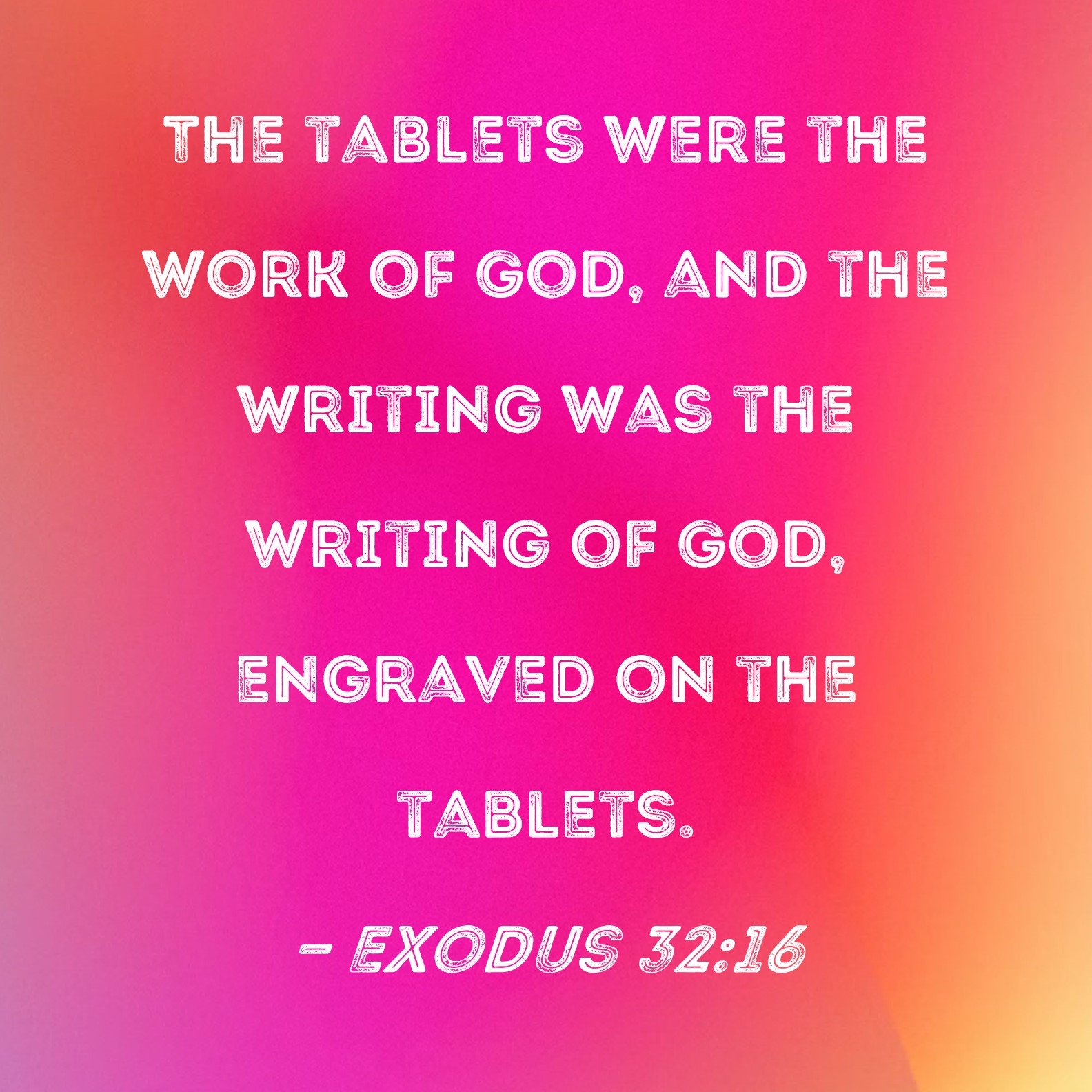 Exodus 32:16 The tablets were the work of God, and the writing was the writing of God, engraved on the tablets.
