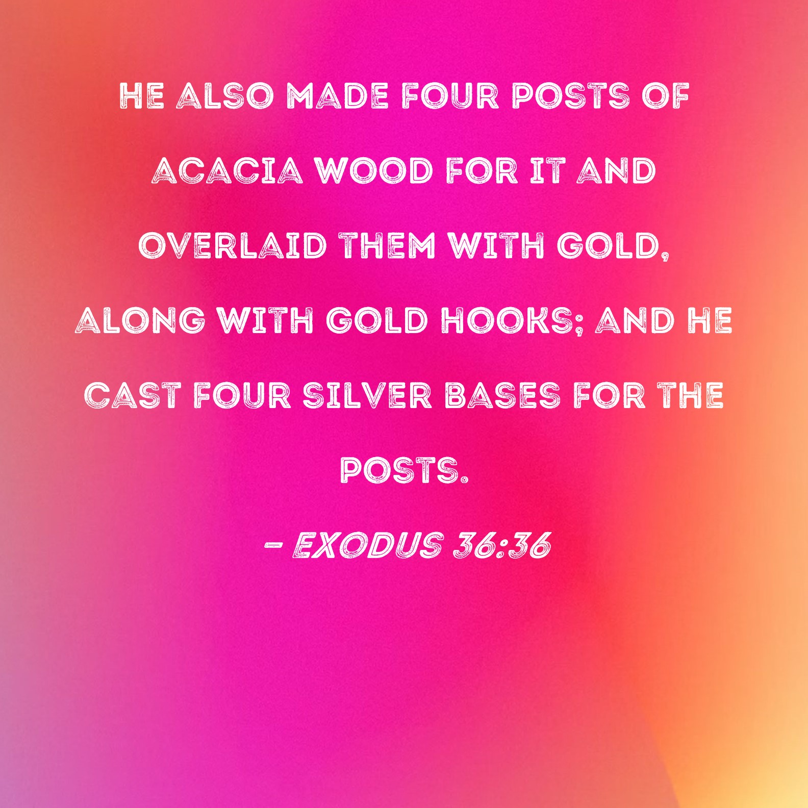 Exodus 36:36 He also made four posts of acacia wood for it and overlaid them with gold, along with gold hooks; and he cast four silver bases for the posts.