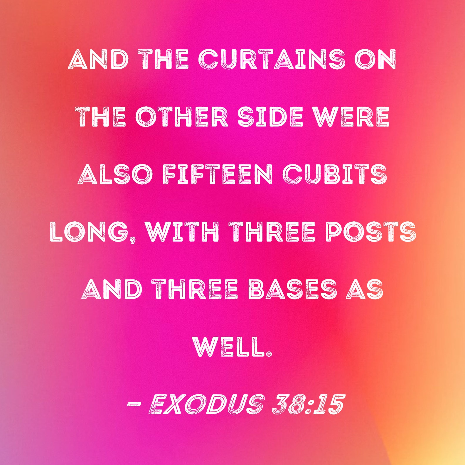 Exodus 38:15 And the curtains on the other side were also fifteen cubits long, with three posts and three bases as well.