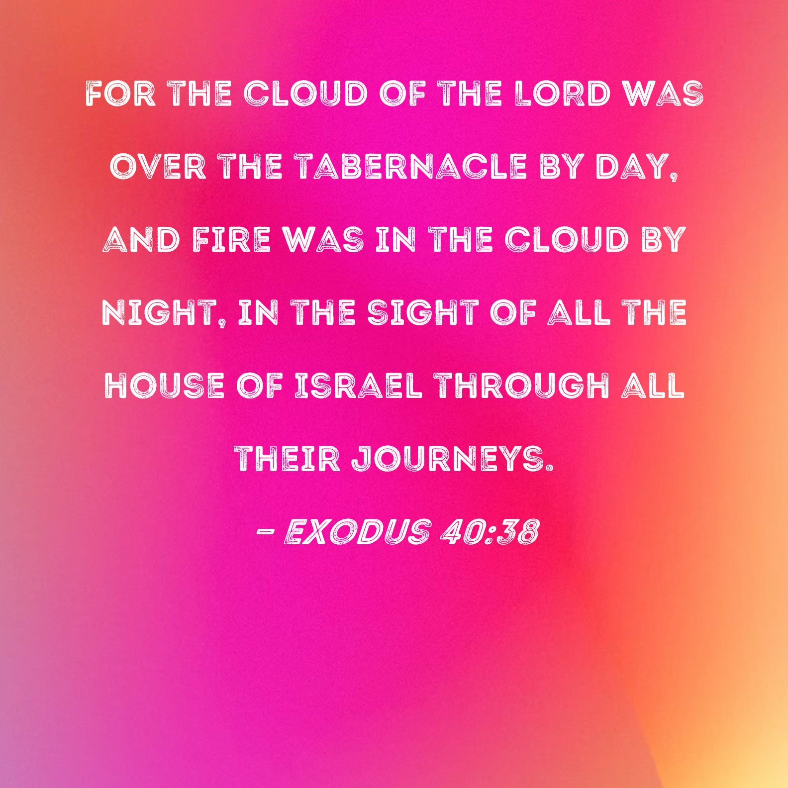 Exodus 40:38 For the cloud of the LORD was over the tabernacle by day, and fire was in the cloud by night, in the sight of all the house of Israel through all their journeys.