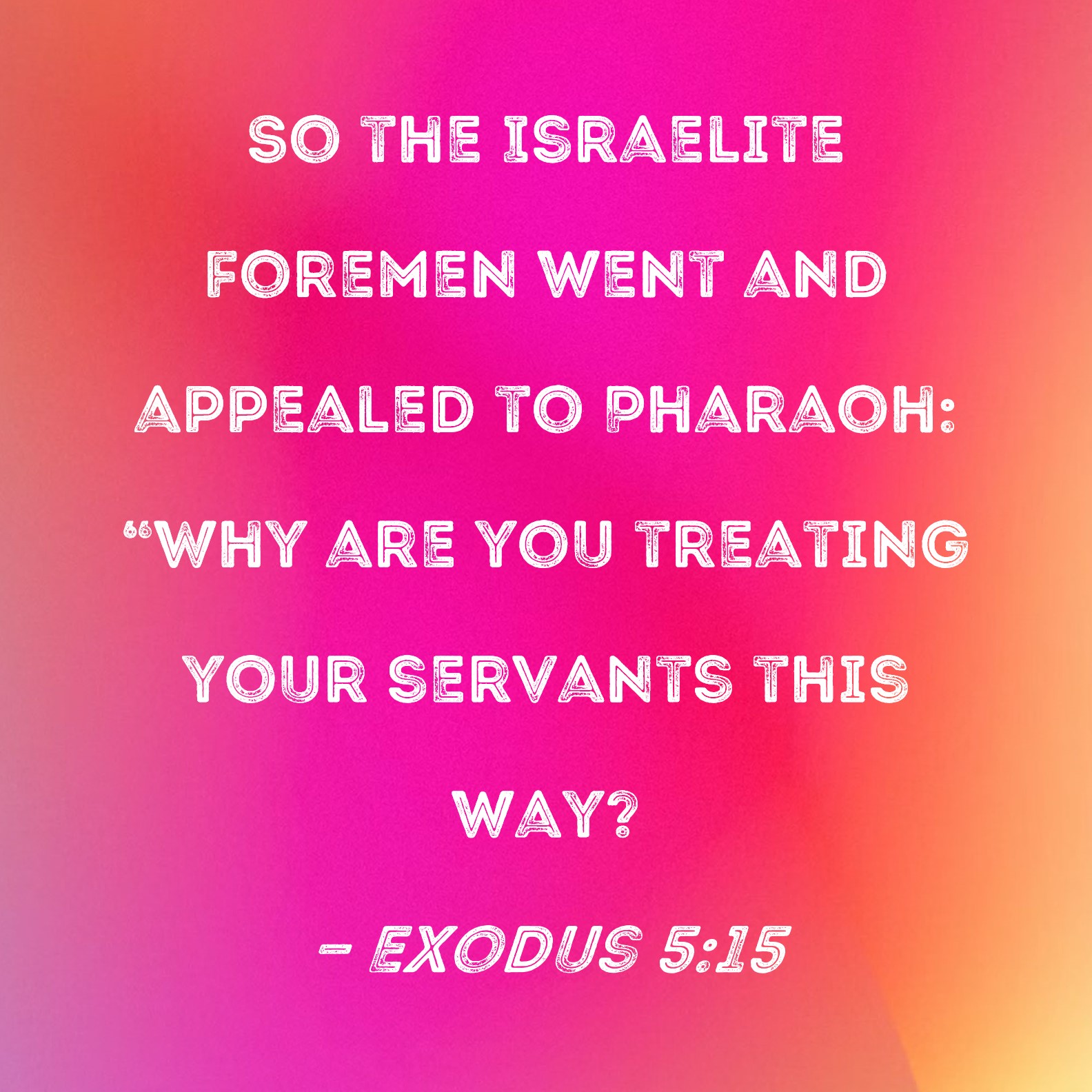 Exodus 5:15 So the Israelite foremen went and appealed to Pharaoh: "Why are you treating your servants this way?