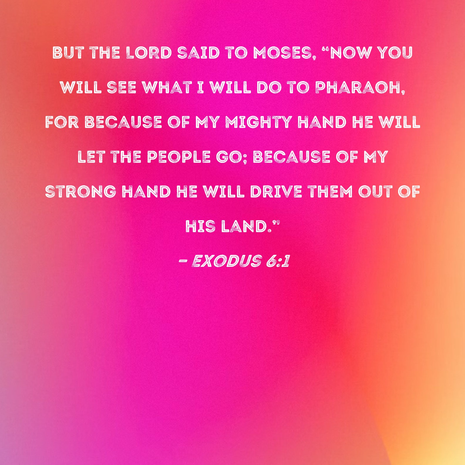 Exodus 6:1 But the LORD said to Moses, "Now you will see what I will do to Pharaoh, for because of My mighty hand he will let the people go; because of My strong hand he will drive them out of his land."