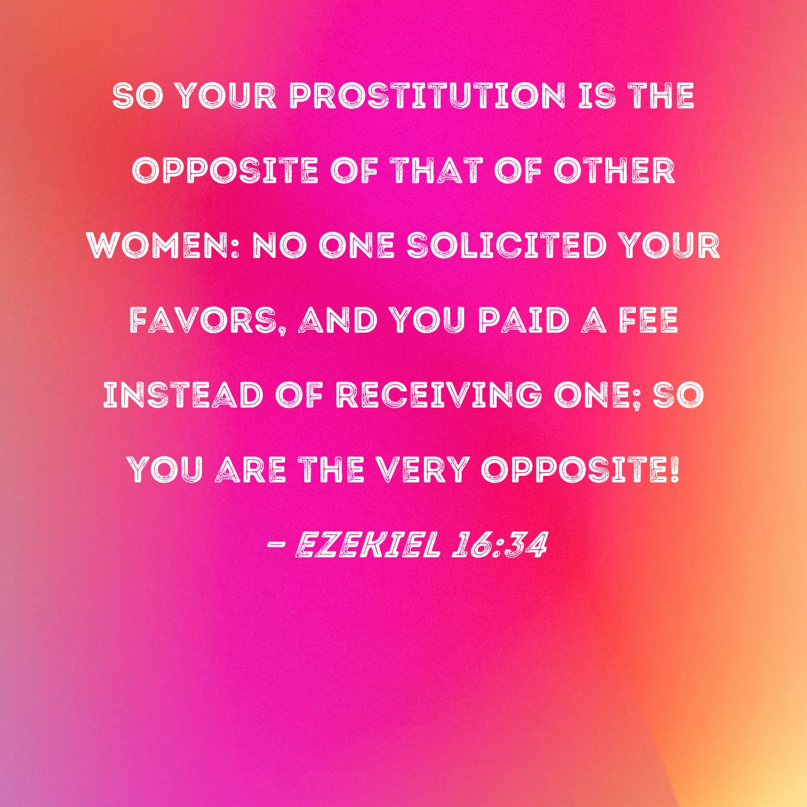 Ezekiel 16:34 So your prostitution is the opposite of that of other women: No one solicited your favors, and you paid a fee instead of receiving one; so you are the very opposite!