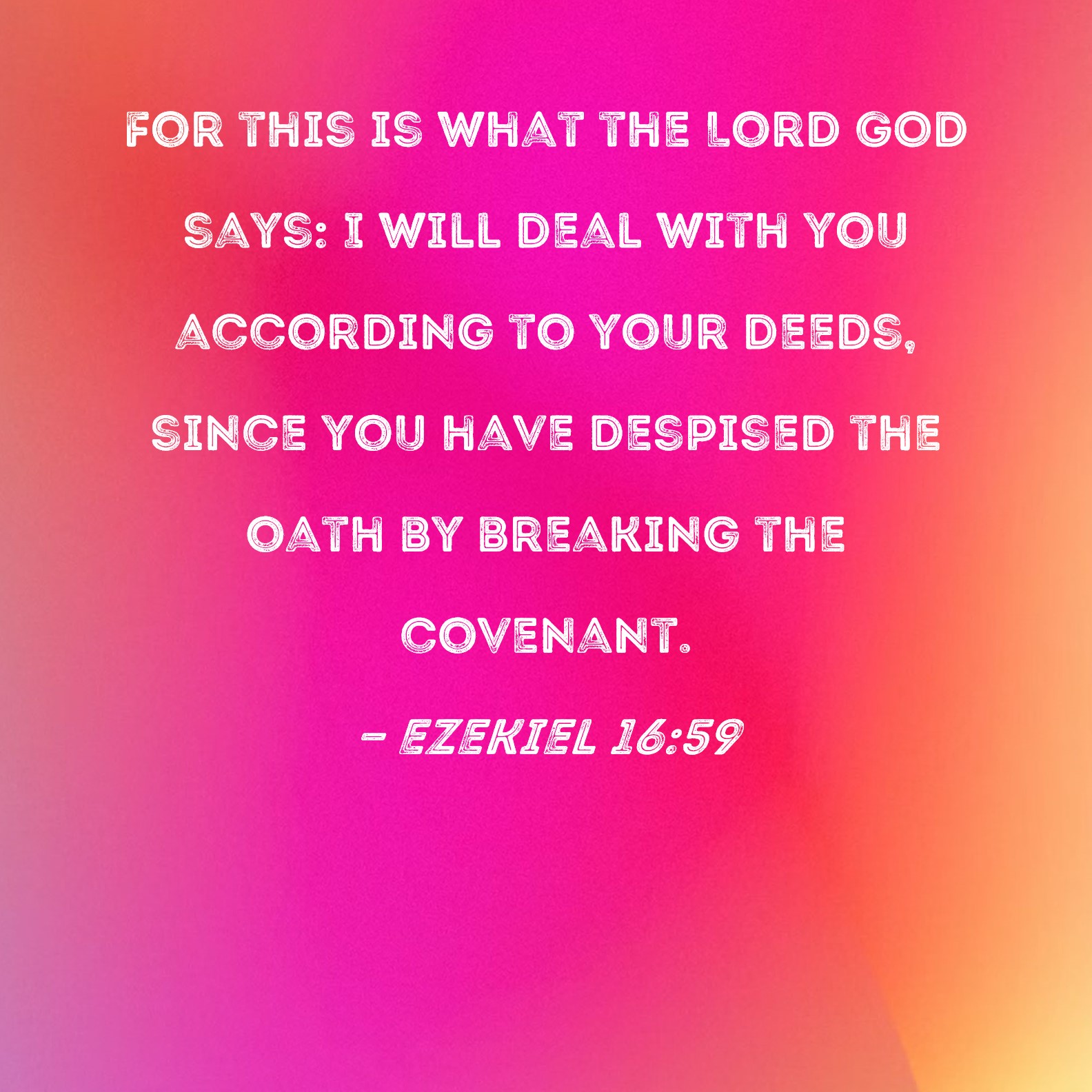 Ezekiel 16:59 For this is what the Lord GOD says: I will deal with you according to your deeds, since you have despised the oath by breaking the covenant.
