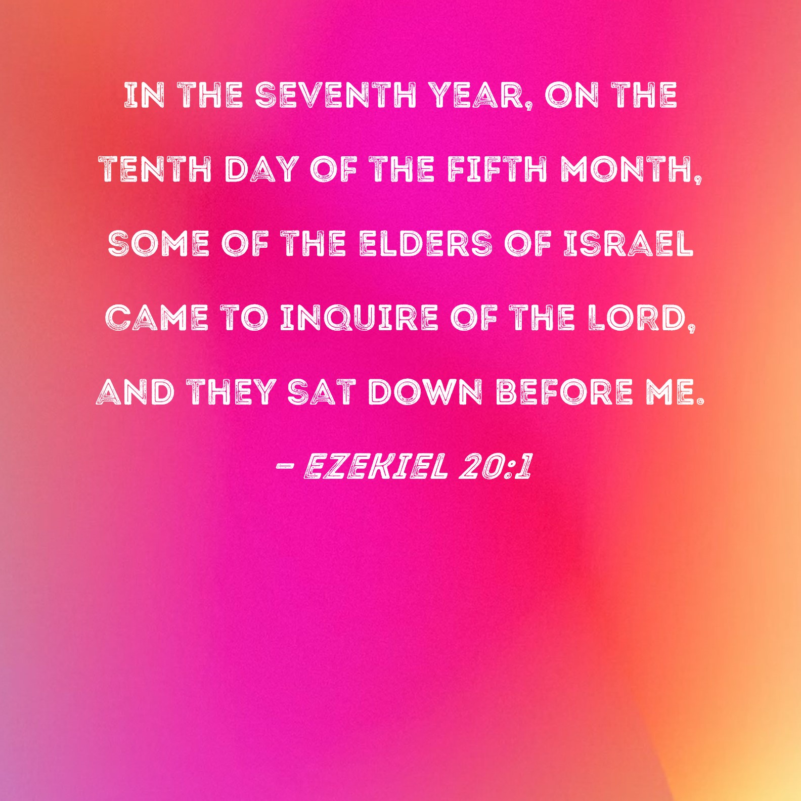 Ezekiel 20:1 In the seventh year, on the tenth day of the fifth month, some of the elders of Israel came to inquire of the LORD, and they sat down before me.