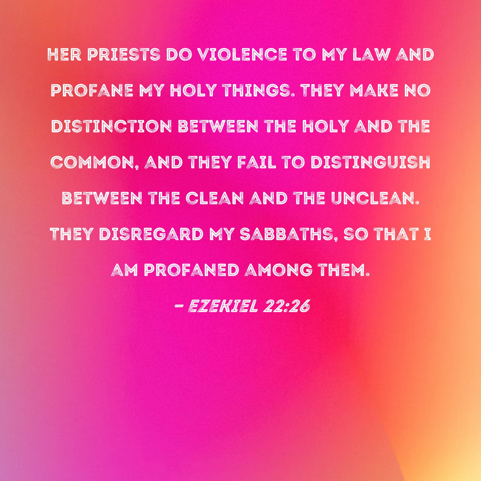 Her priests have done violence to my law, and have profaned mine holy things: they have put no difference between the holy and the common, neither have they caused men to discern between the unclean and the clean, and have hid their eyes from my sabbaths, and I am profaned among them.