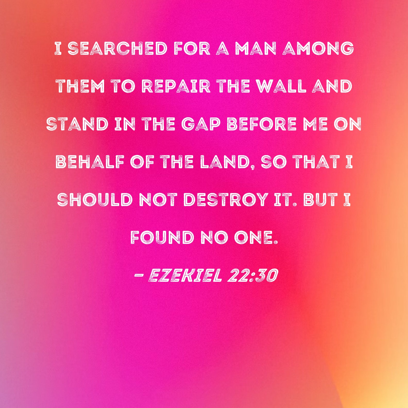 Ezekiel 22:30 I searched for a man among them to repair the wall and stand in the gap before Me on behalf of the land, so that I should not destroy it. But I found no one.