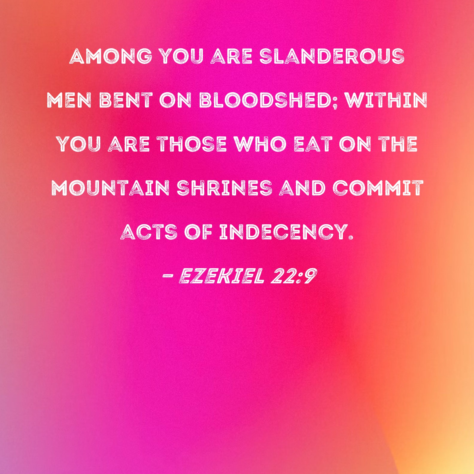 Ezekiel 22:9 Among you are slanderous men bent on bloodshed; within you are those who eat on the mountain shrines and commit acts of indecency.