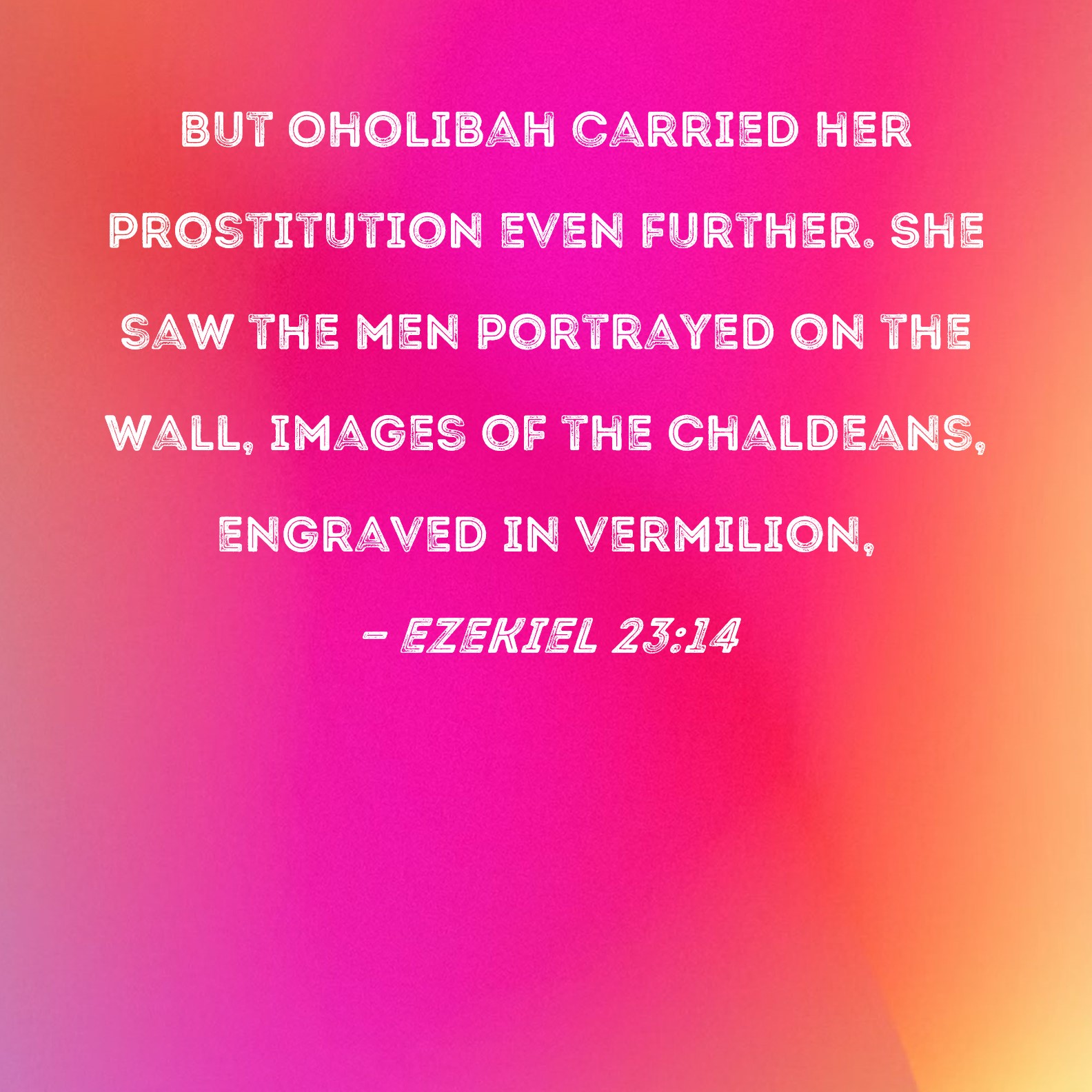 Ezekiel 23:14 But Oholibah carried her prostitution even further. She saw the men portrayed on the wall, images of the Chaldeans, engraved in vermilion,