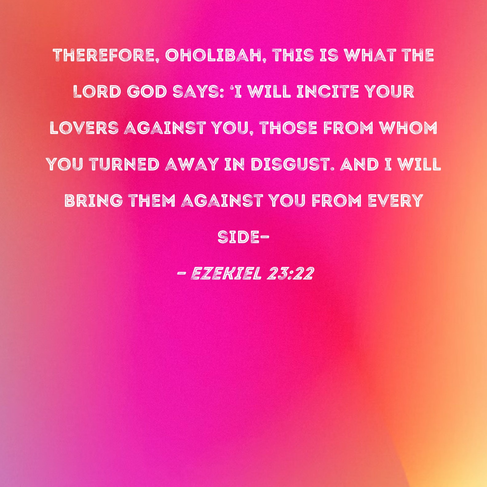 Ezekiel 23:22 Therefore, Oholibah, this is what the Lord GOD says: 'I will incite your lovers against you, those from whom you turned away in disgust. And I will bring them against you from every side--