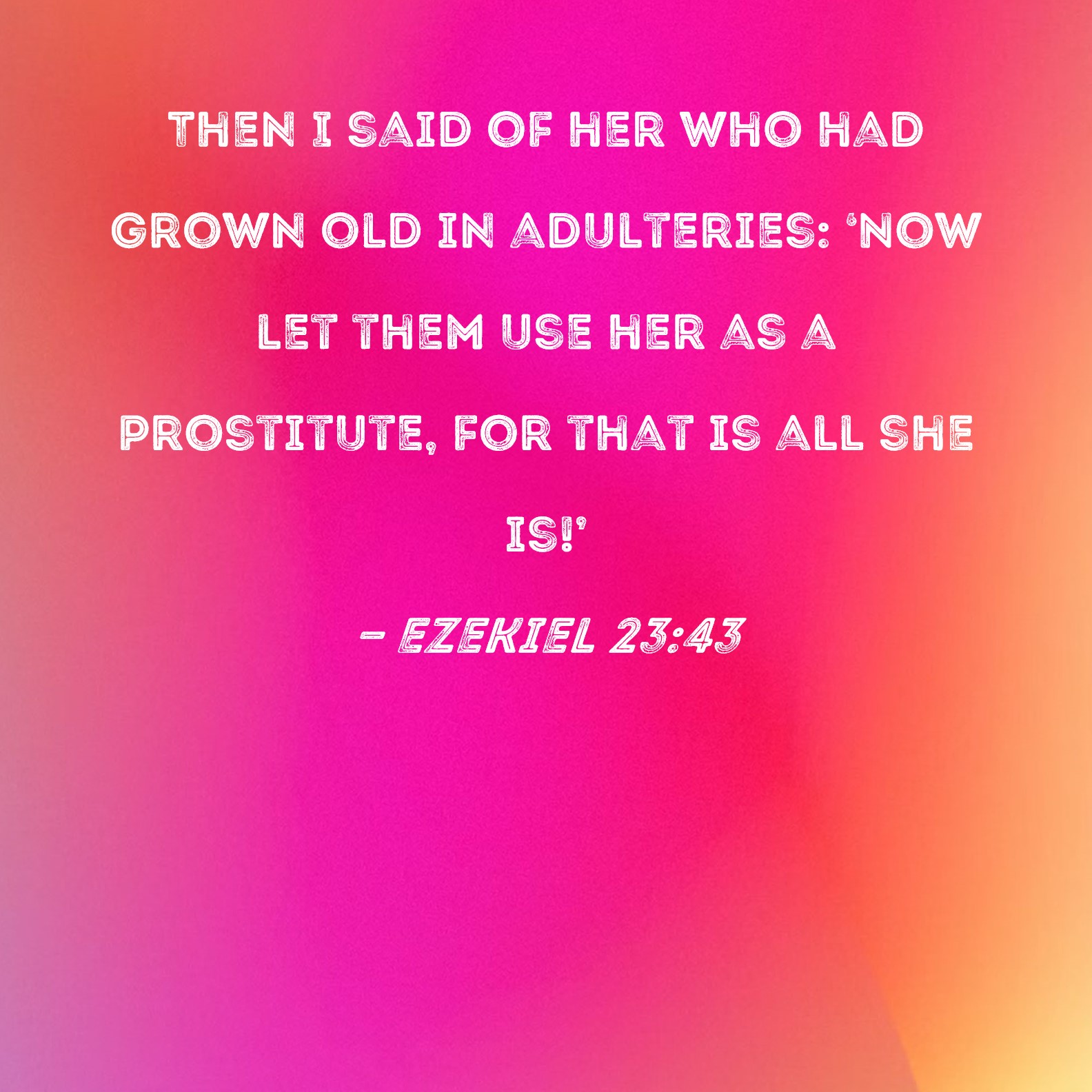 Ezekiel 23:43 Then I said of her who had grown old in adulteries: 'Now let them use her as a prostitute, for that is all she is!'