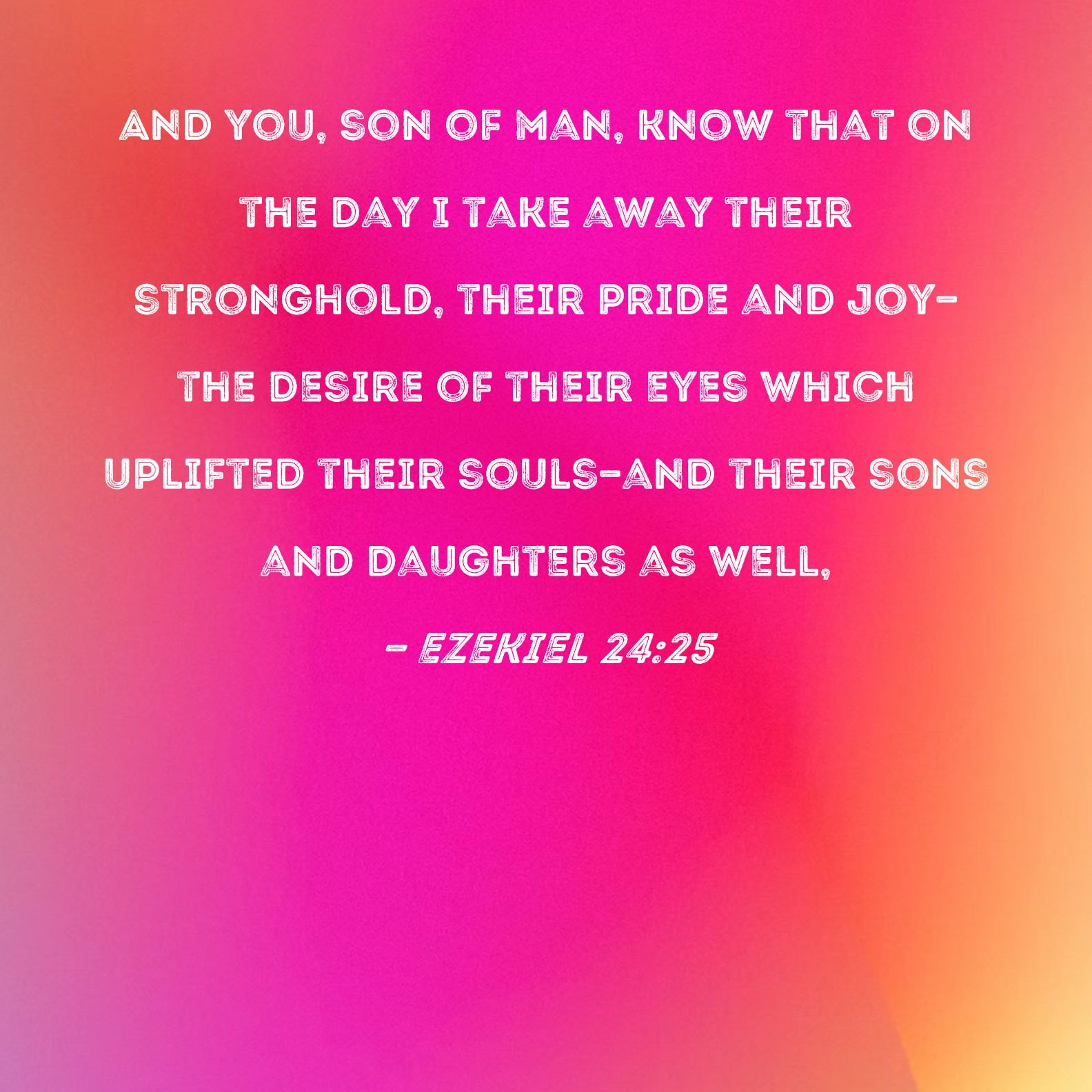 Ezekiel 24:25 And you, son of man, know that on the day I take away their stronghold, their pride and joy--the desire of their eyes which uplifted their souls--and their sons and daughters as well,