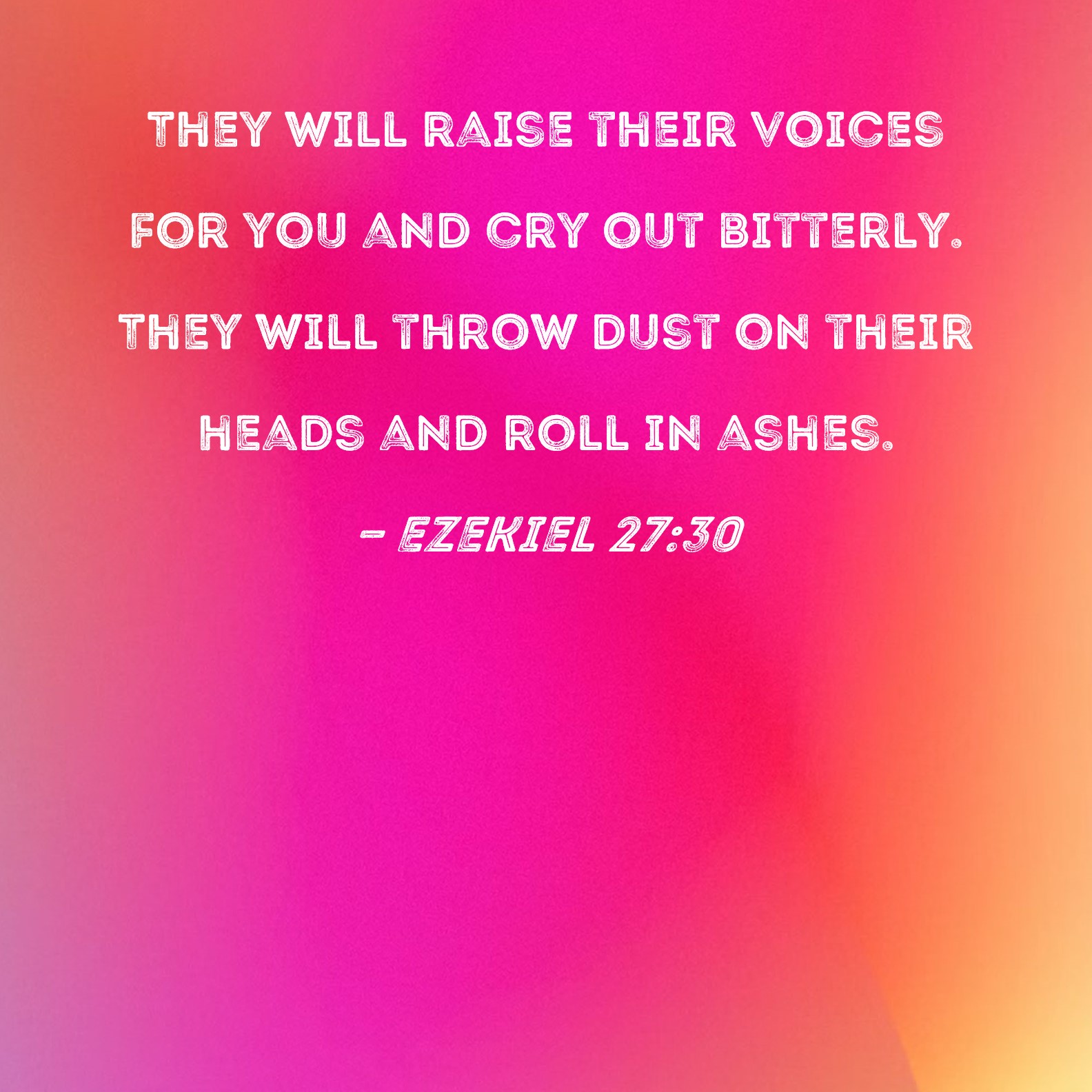 Ezekiel 27:30 They will raise their voices for you and cry out bitterly. They will throw dust on their heads and roll in ashes.