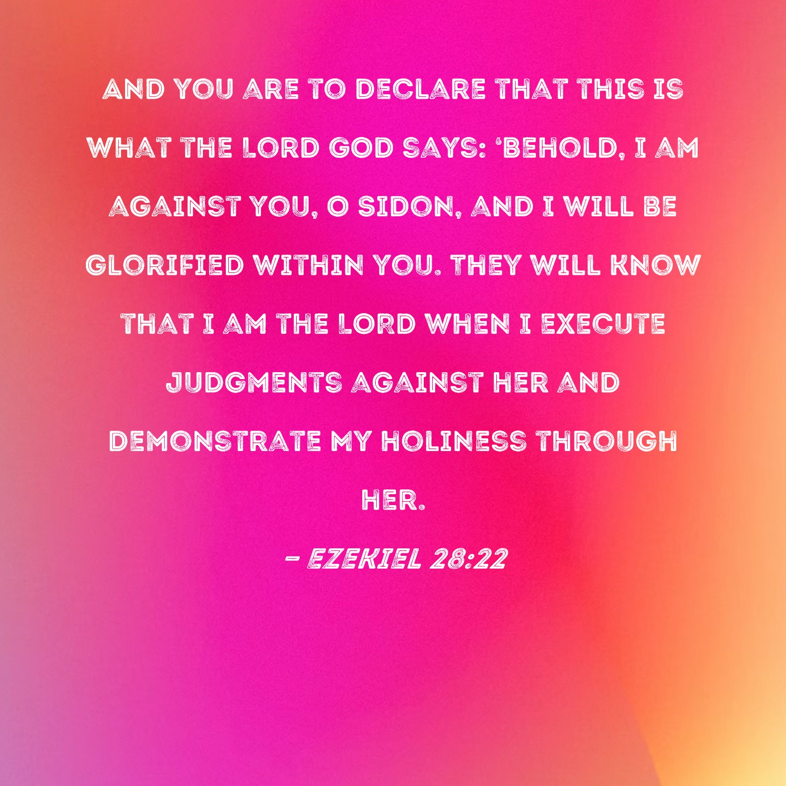 Ezekiel 28:22 And you are to declare that this is what the Lord GOD says: 'Behold, I am against you, O Sidon, and I will be glorified within you. They will know that I am the LORD when I execute judgments against her and demonstrate My holiness through her.