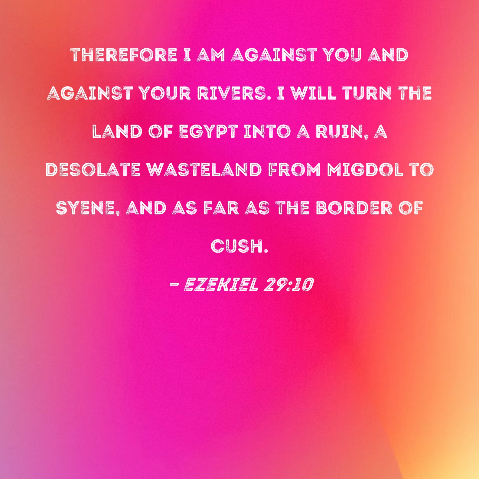 Ezekiel 29:10 therefore I am against you and against your rivers. I will turn the land of Egypt into a ruin, a desolate wasteland from Migdol to Syene, and as far as the border of Cush.