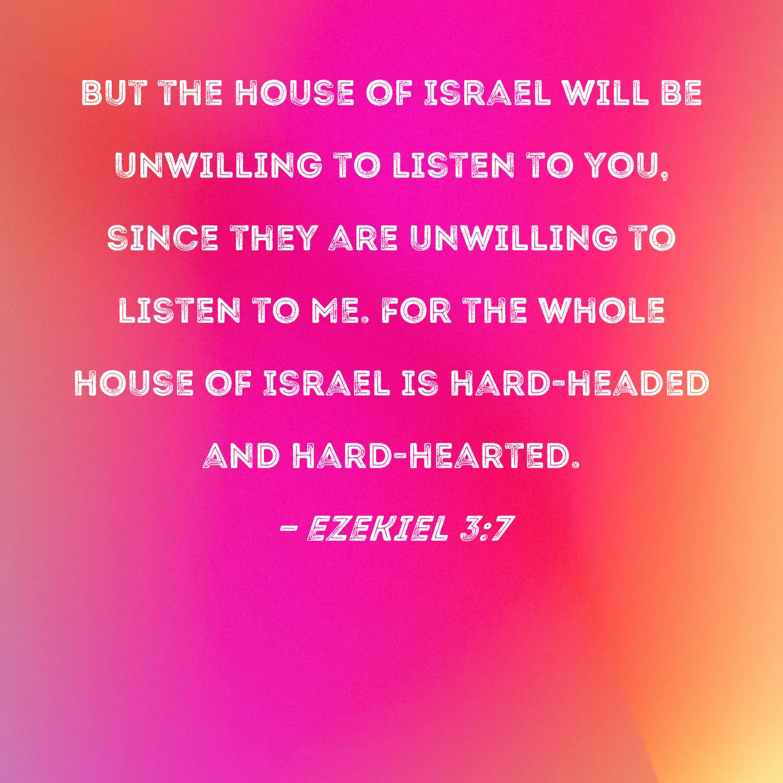 Ezekiel 3:7 But the house of Israel will be unwilling to listen to you, since they are unwilling to listen to Me. For the whole house of Israel is hard-headed and hard-hearted.