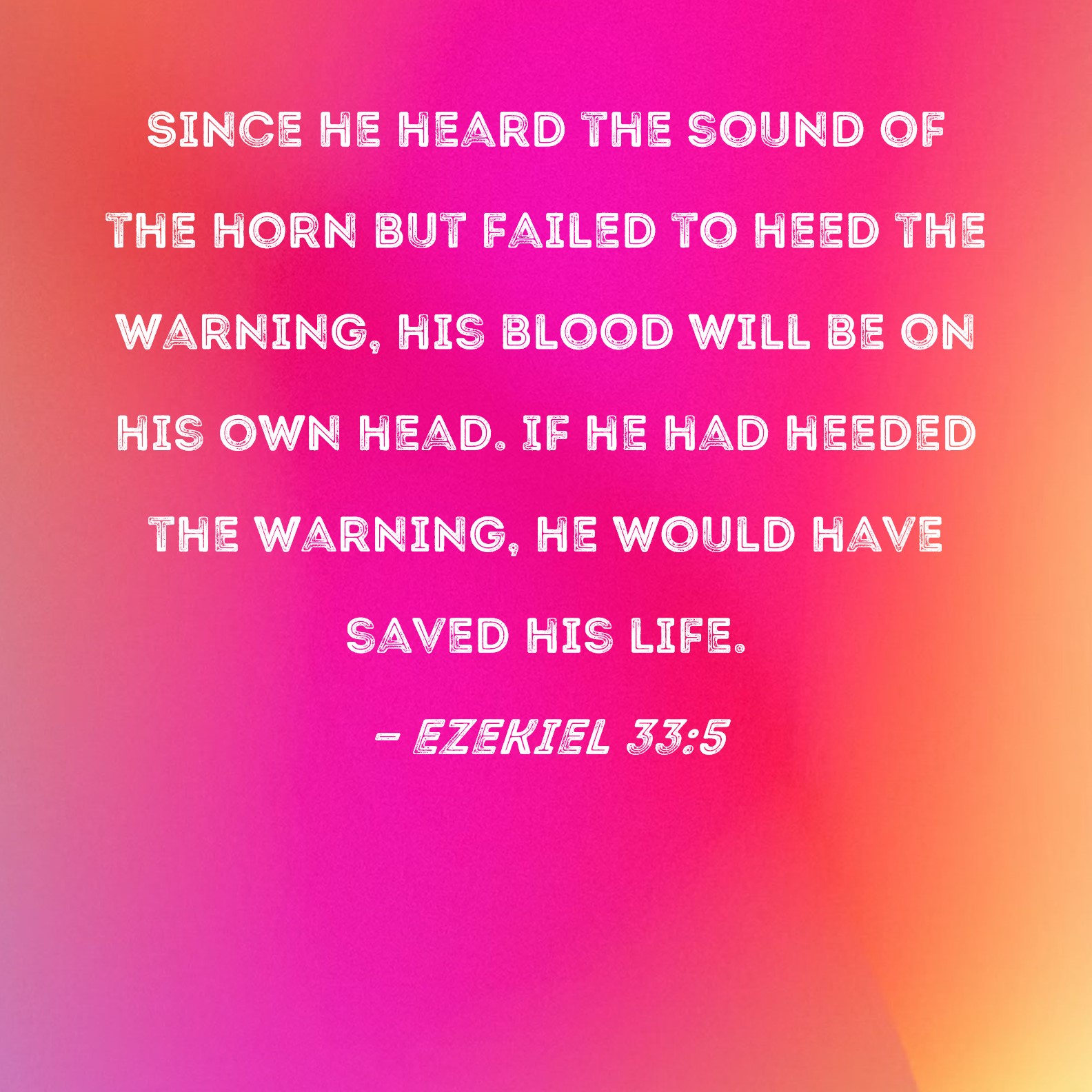Ezekiel 33:5 Since he heard the sound of the horn but failed to heed the warning, his blood will be on his own head. If he had heeded the warning, he would have saved his life.