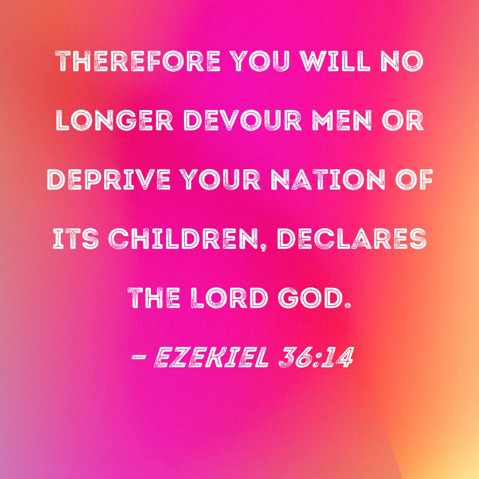 Ezekiel 36:14 therefore you will no longer devour men or deprive your nation of its children, declares the Lord GOD.