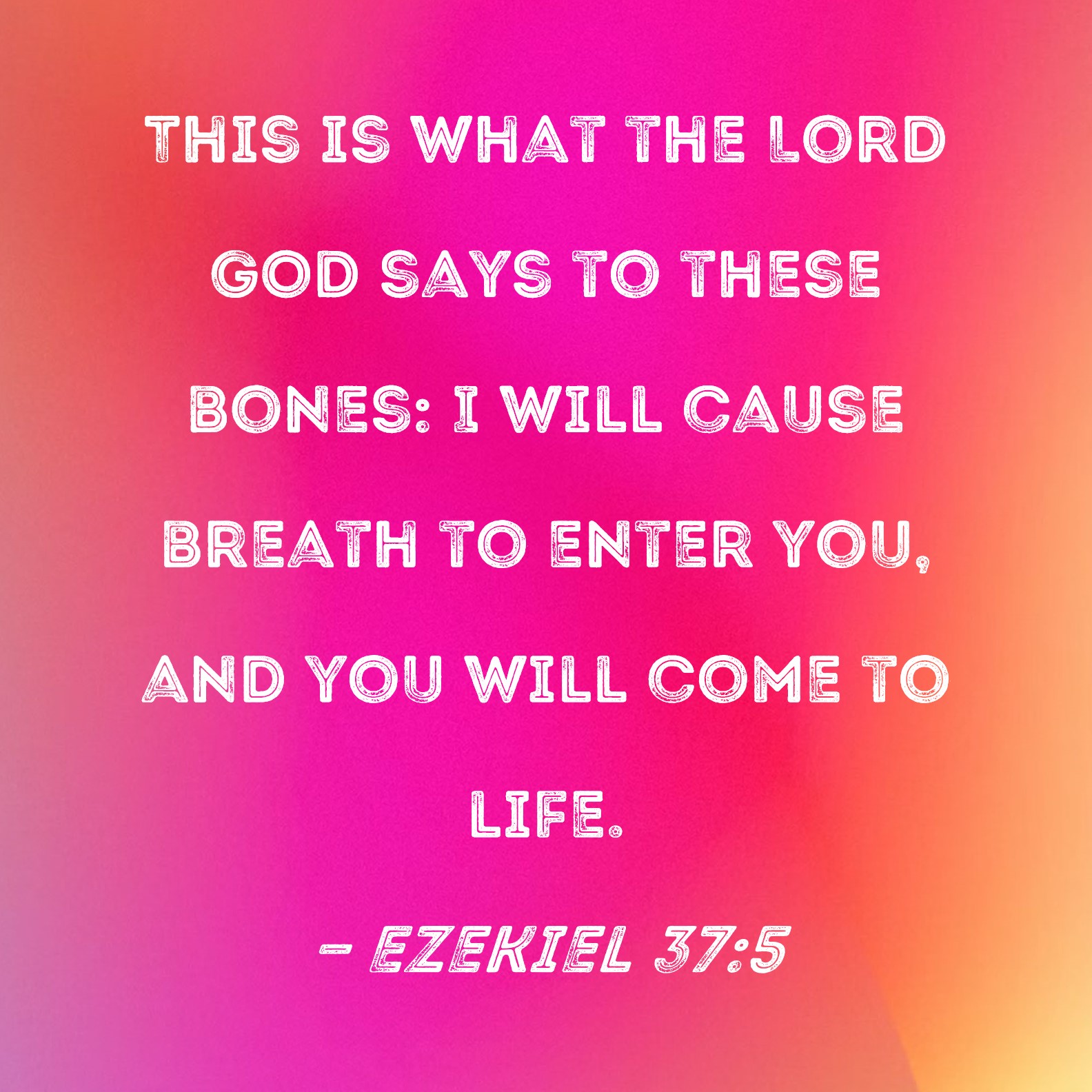 Ezekiel 37:5 This is what the Lord GOD says to these bones: I will cause breath to enter you, and you will come to life.