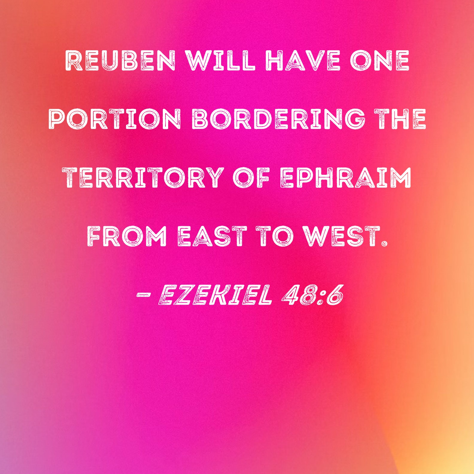 Ezekiel 48:6 Reuben will have one portion bordering the territory of Ephraim from east to west.
