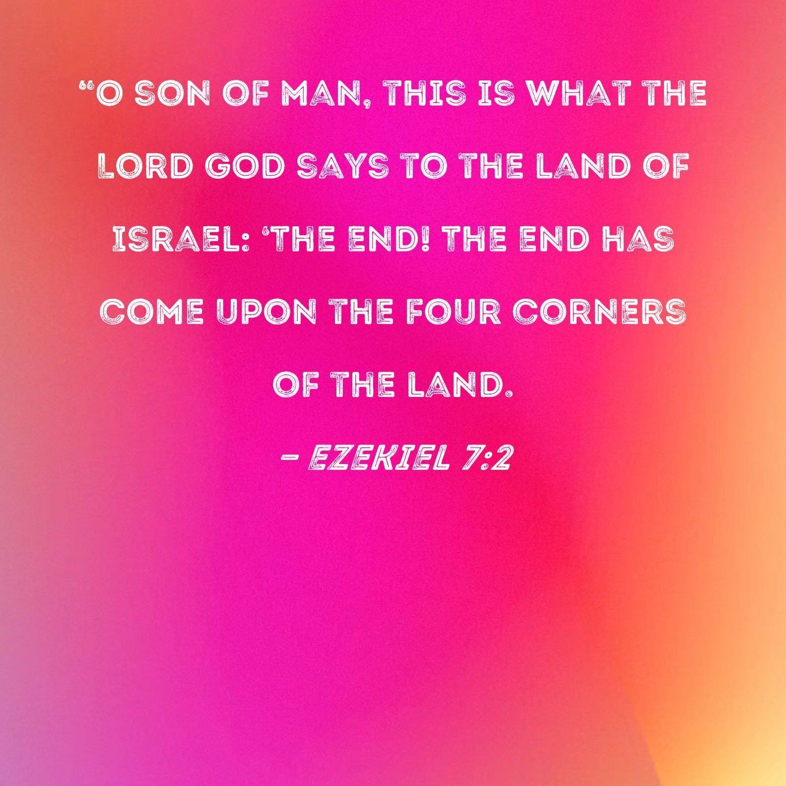 Ezekiel 7:2 "O son of man, this is what the Lord GOD says to the land of Israel: 'The end! The end has come upon the four corners of the land.