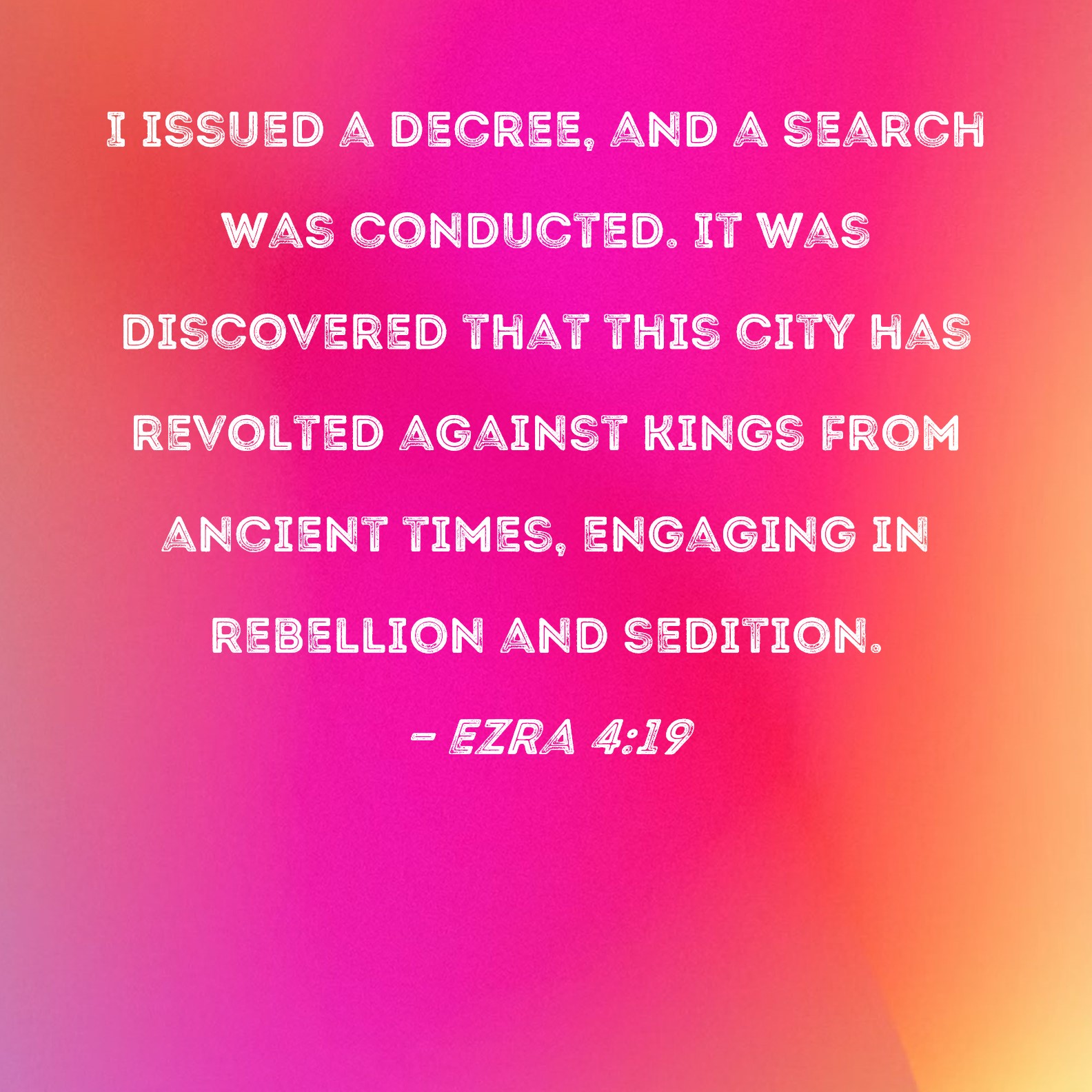 Ezra 4:19 I issued a decree, and a search was conducted. It was discovered that this city has revolted against kings from ancient times, engaging in rebellion and sedition.