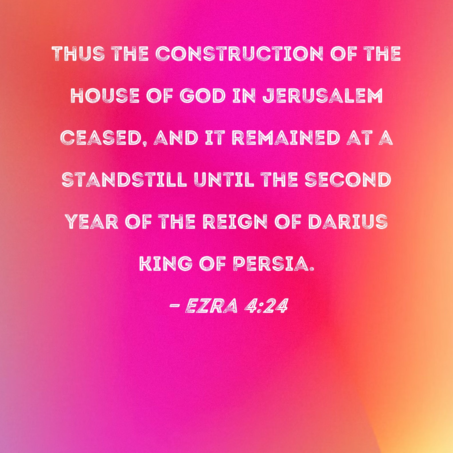 Ezra 4:24 Thus the construction of the house of God in Jerusalem ceased, and it remained at a standstill until the second year of the reign of Darius king of Persia.