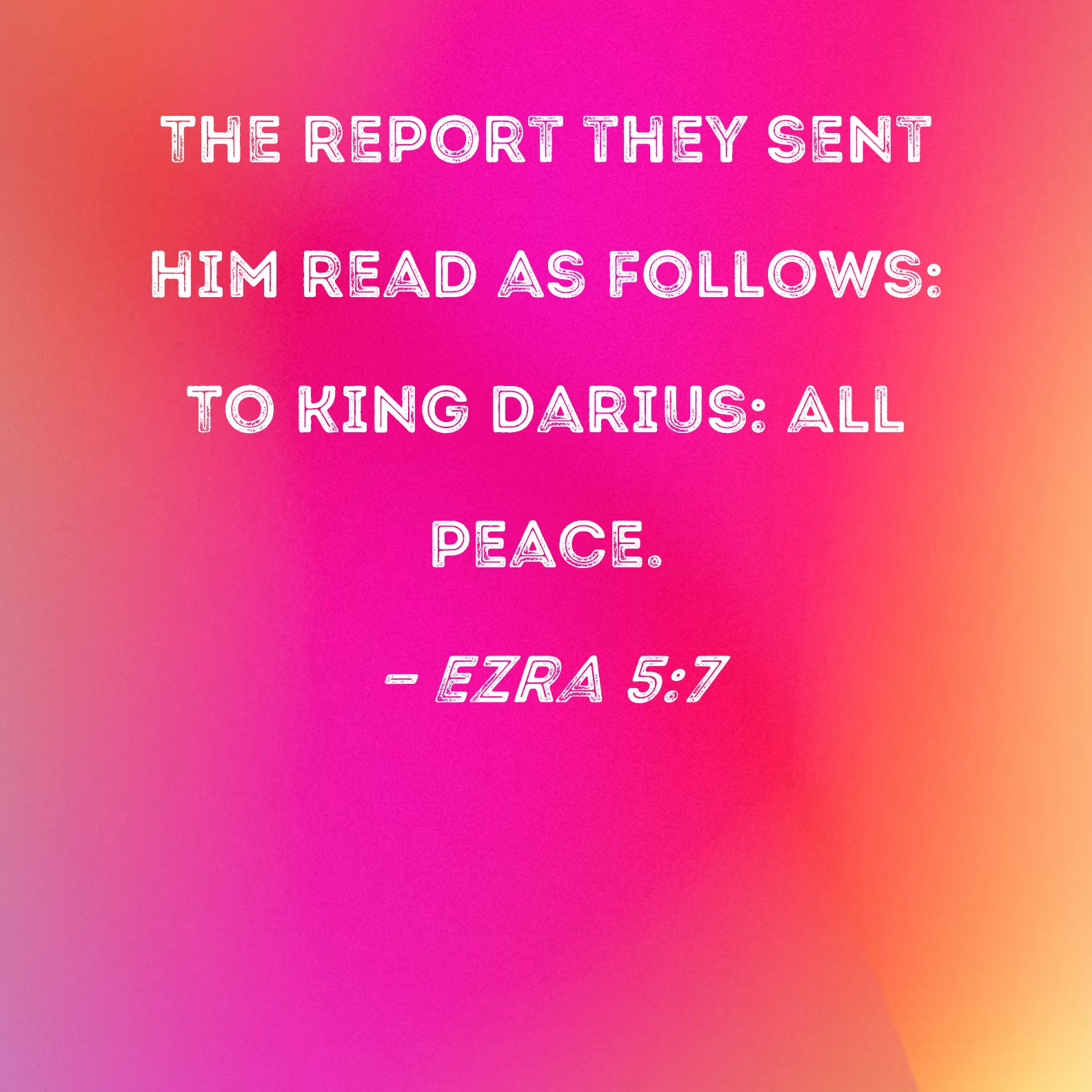 Ezra 5:7 The report they sent him read as follows: To King Darius: All peace.
