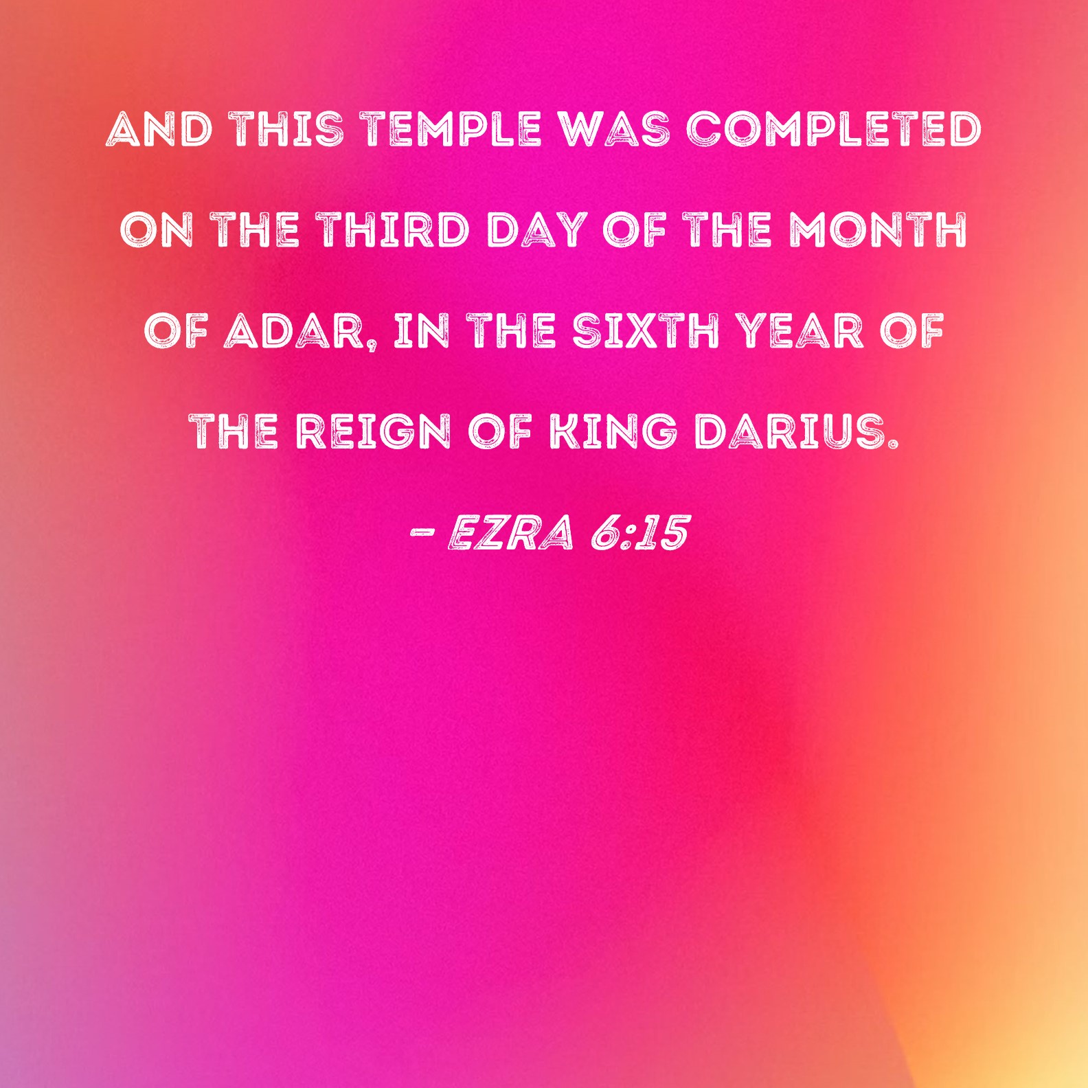 Ezra 6:15 And this temple was completed on the third day of the month of Adar, in the sixth year of the reign of King Darius.
