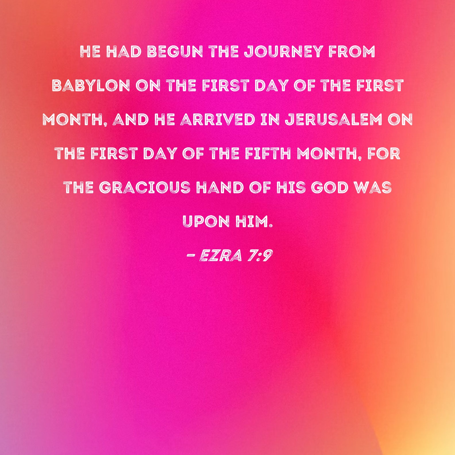 Ezra 7:9 He had begun the journey from Babylon on the first day of the first month, and he arrived in Jerusalem on the first day of the fifth month, for the gracious hand of his God was upon him.