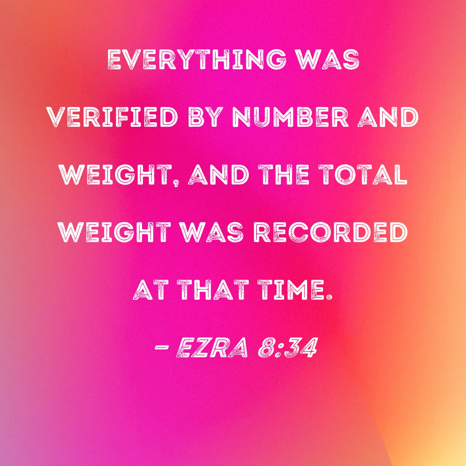 Ezra 8:34 Everything was verified by number and weight, and the total weight was recorded at that time.